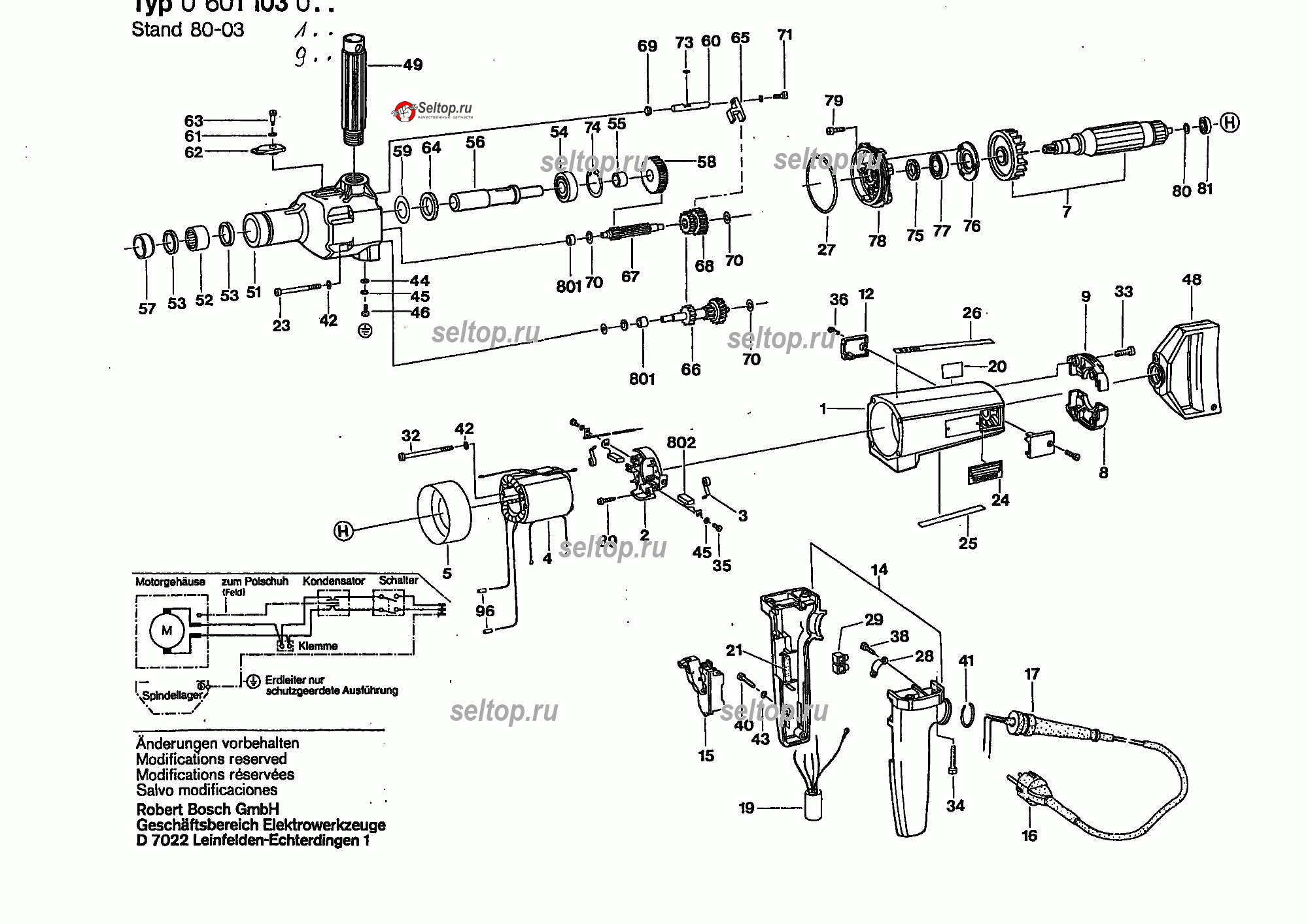 Запчасти для дрели Bosch UB2J77 (0601103917)