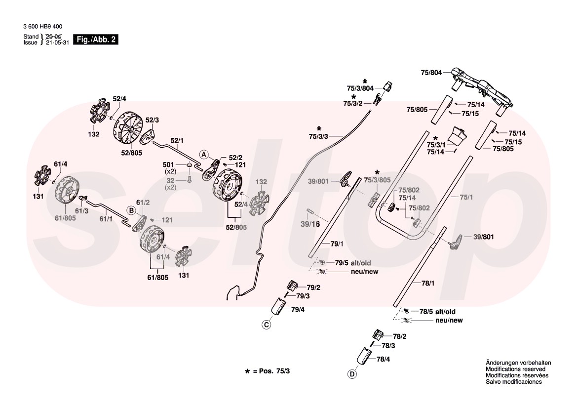 Запчасти для газонокосилки BOSCH UniversalRotak 650 (3600HB9400) (схема 2), взрыв-схема: