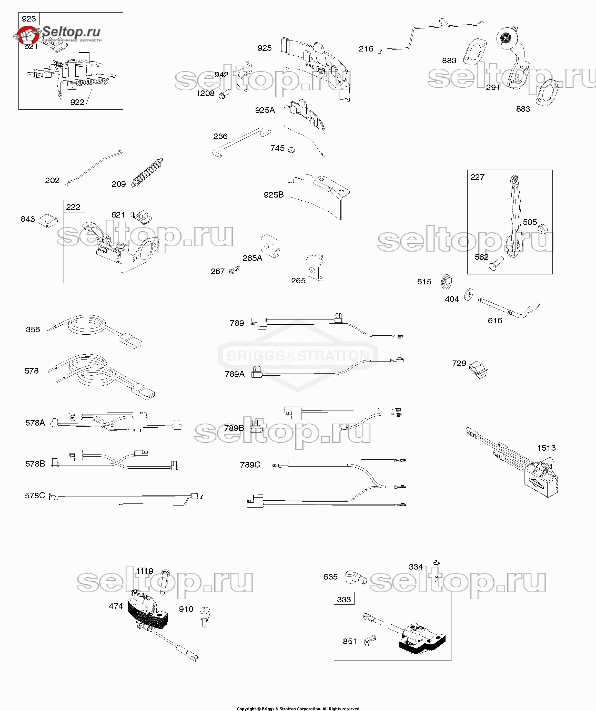 Генератор переменного тока, тормоз, система управления, пружина регулятора, зажигание Briggs Stratton 100605-0017-H8