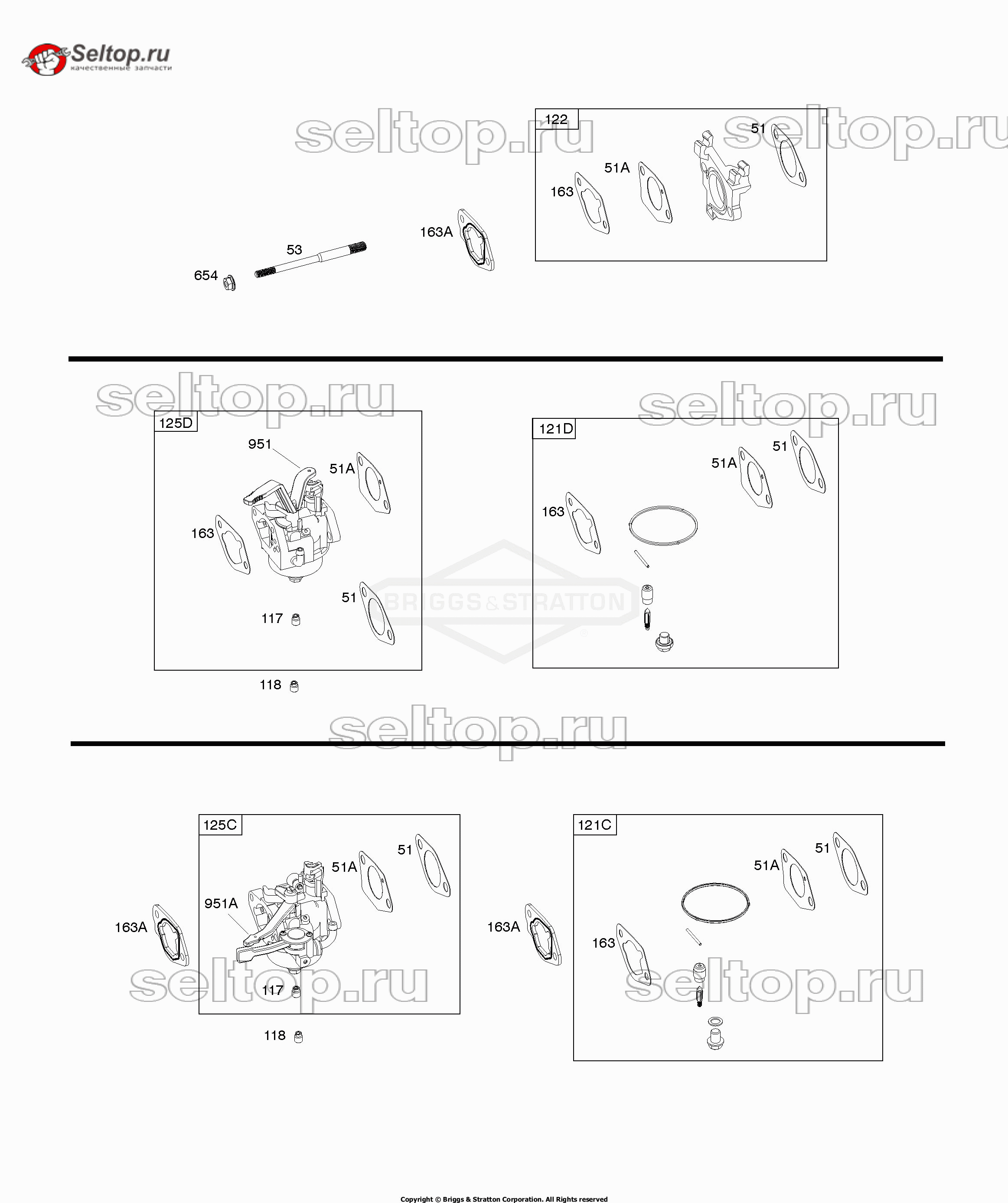 Карбюратор Briggs Stratton 19N137-0030-H1, взрыв-схема: