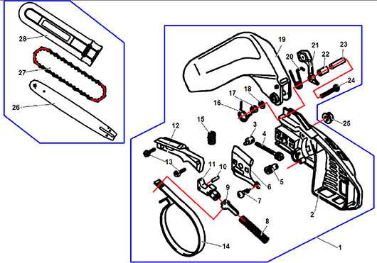 Крышка шины, цепной тормоз для Чемпион 120T, взрыв-схема: