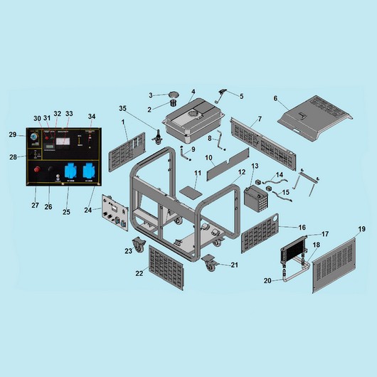 АКБ и топливный бак для Чемпион DG10000E, взрыв-схема: