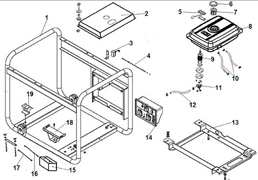 Бак и рама для Чемпион DG2200E, взрыв-схема: