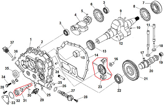 Коленвал и распредвал для Чемпион DG3600E, взрыв-схема: