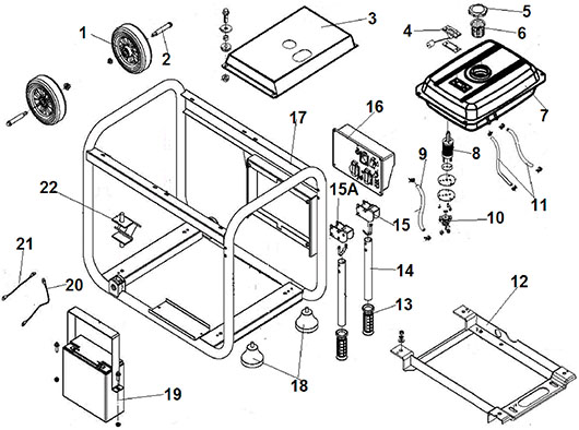 Рама и АКБ для Чемпион DG3600E, взрыв-схема: