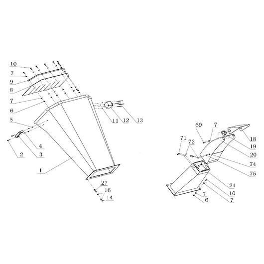 Воронка загрузочная и воронка выпускная для Чемпион CH1211E, взрыв-схема: