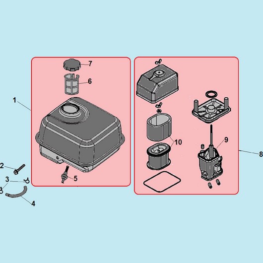 Топливный бак и воздушный фильтр для Чемпион BC8716, взрыв-схема: