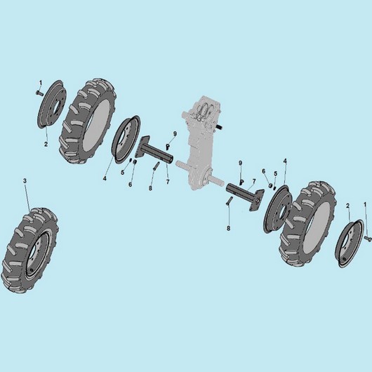 Полуось крепления колеса и колеса для Чемпион BC9714, взрыв-схема: