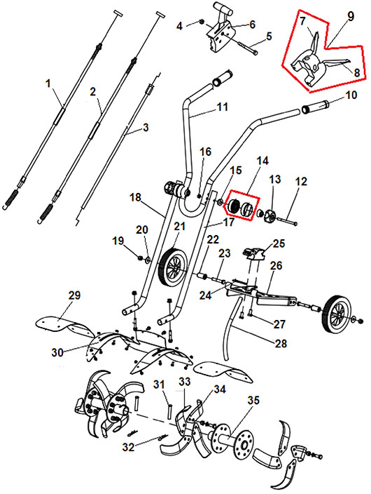 Фрезы, тросы, рукоятки управления для Чемпион ВC 5602, взрыв-схема: