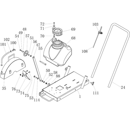 Рукоятка, шасси и топливный бак для Чемпион SC350, взрыв-схема: