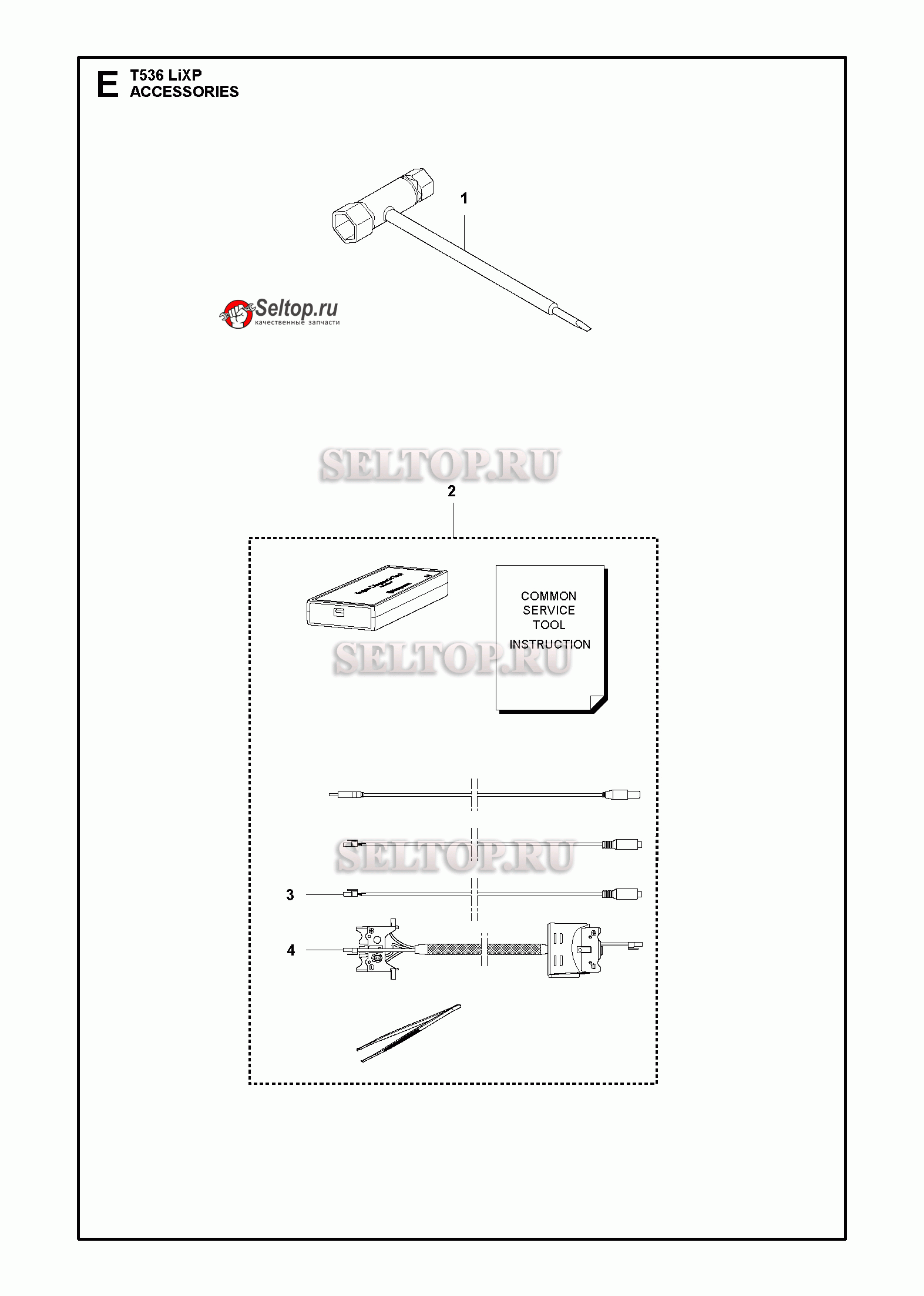 Аксессуары для аккумуляторной цепной пилы Husqvarna T536 Li XP, взрыв-схема: