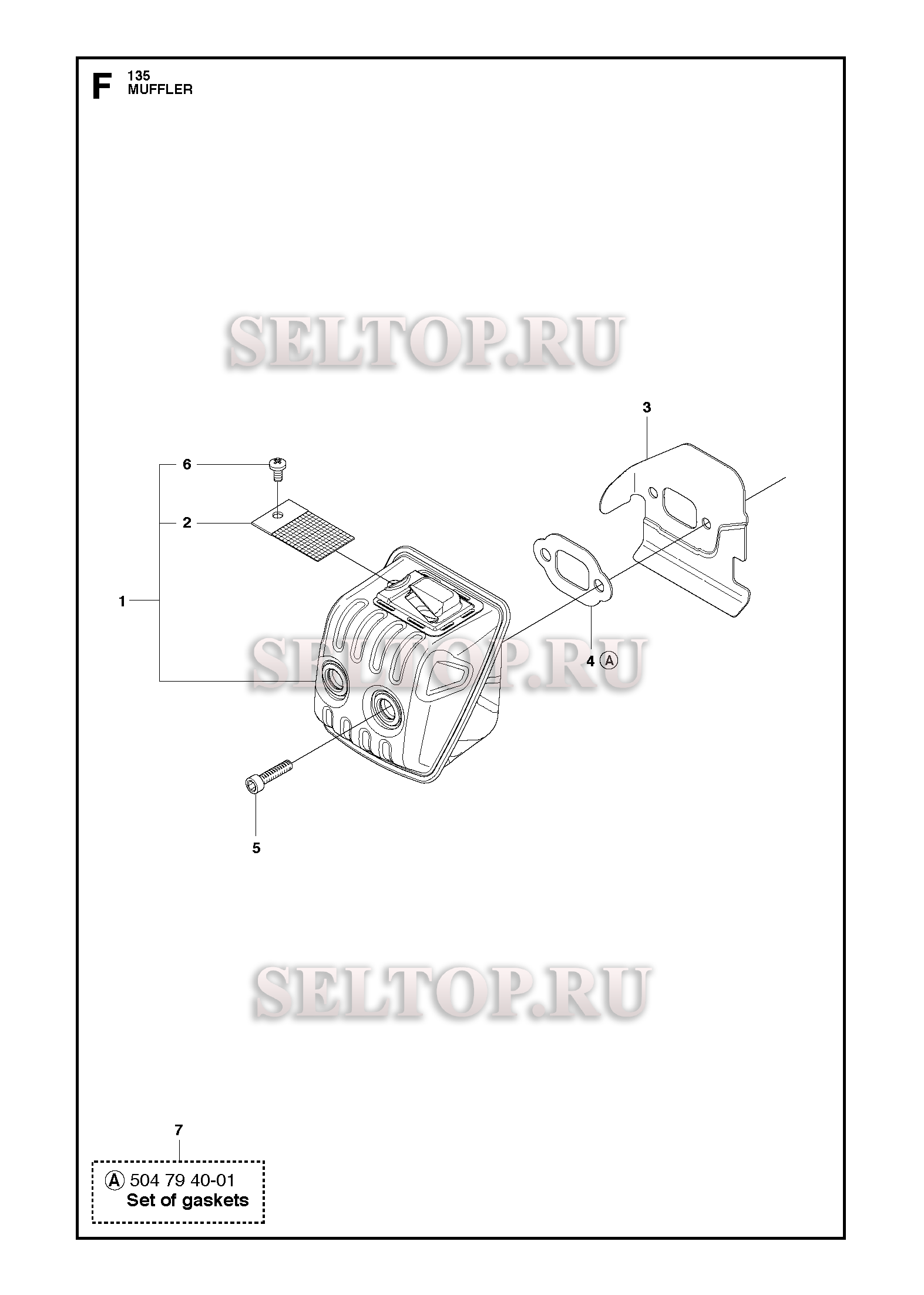 Глушитель для бензопилы Husqvarna 135 (с 2011-08), взрыв-схема: