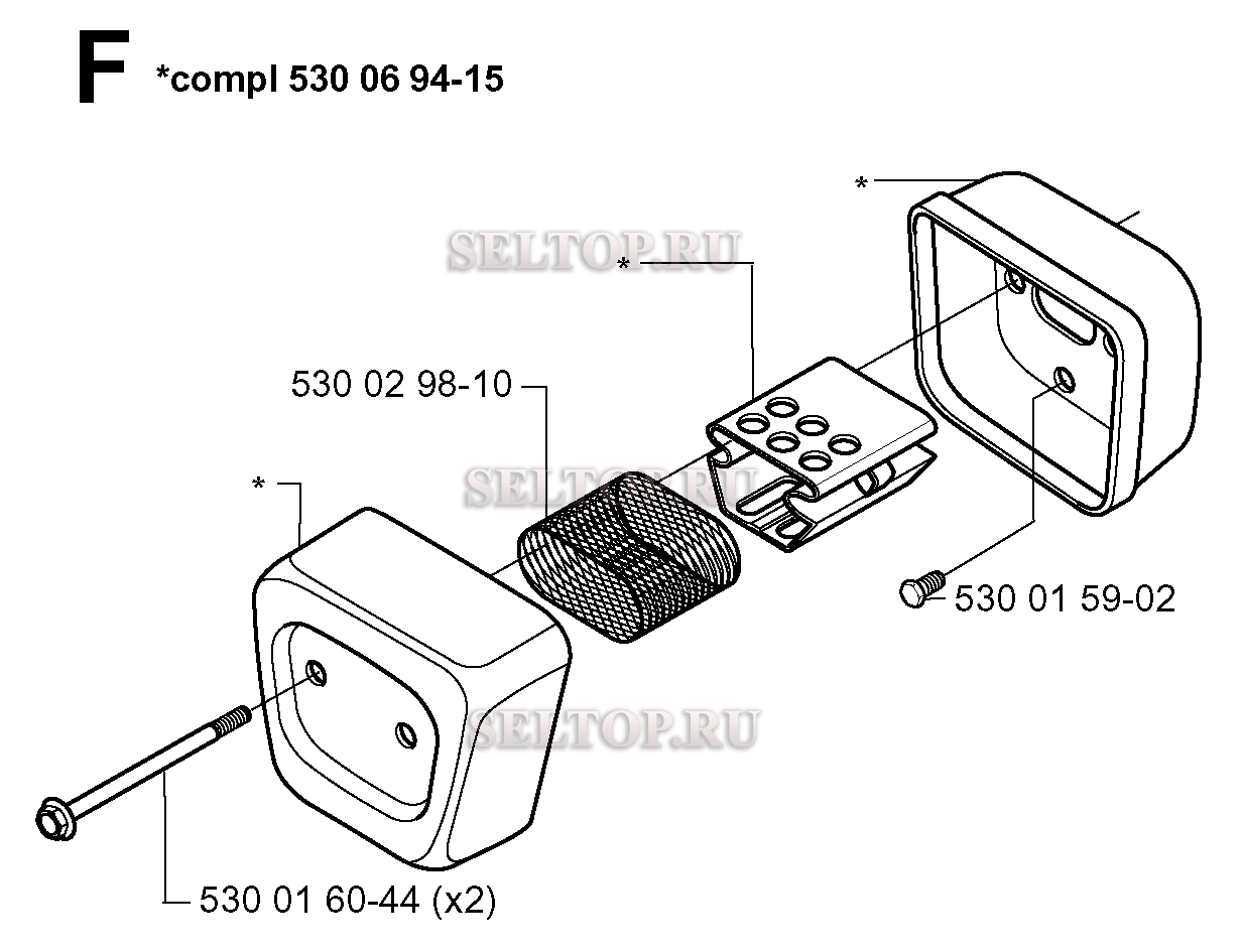 Глушитель для бензопилы Husqvarna 136 (с 2001-09), взрыв-схема: