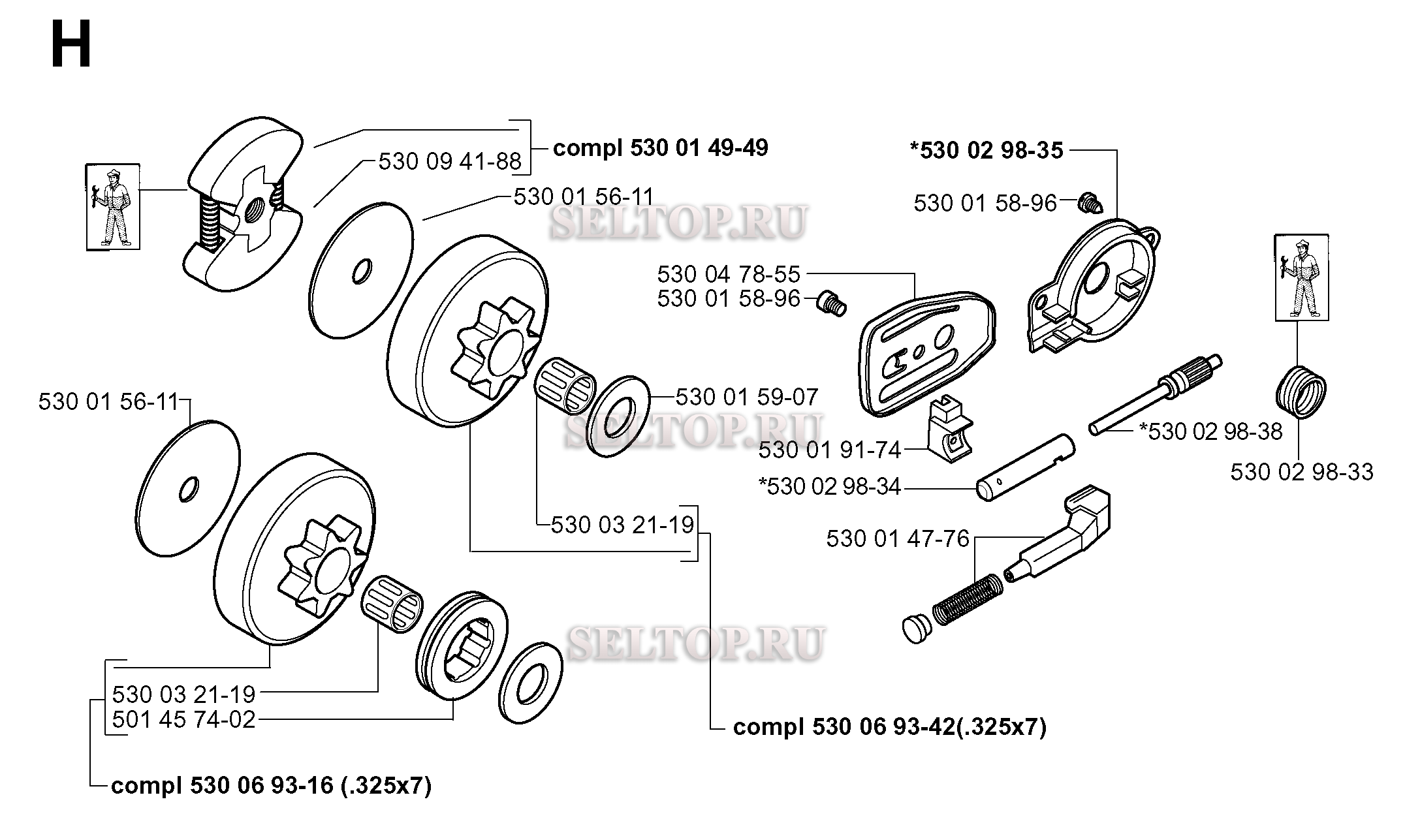 Сцепление, масляный насос для бензопилы Husqvarna 136 (с 2001-09)