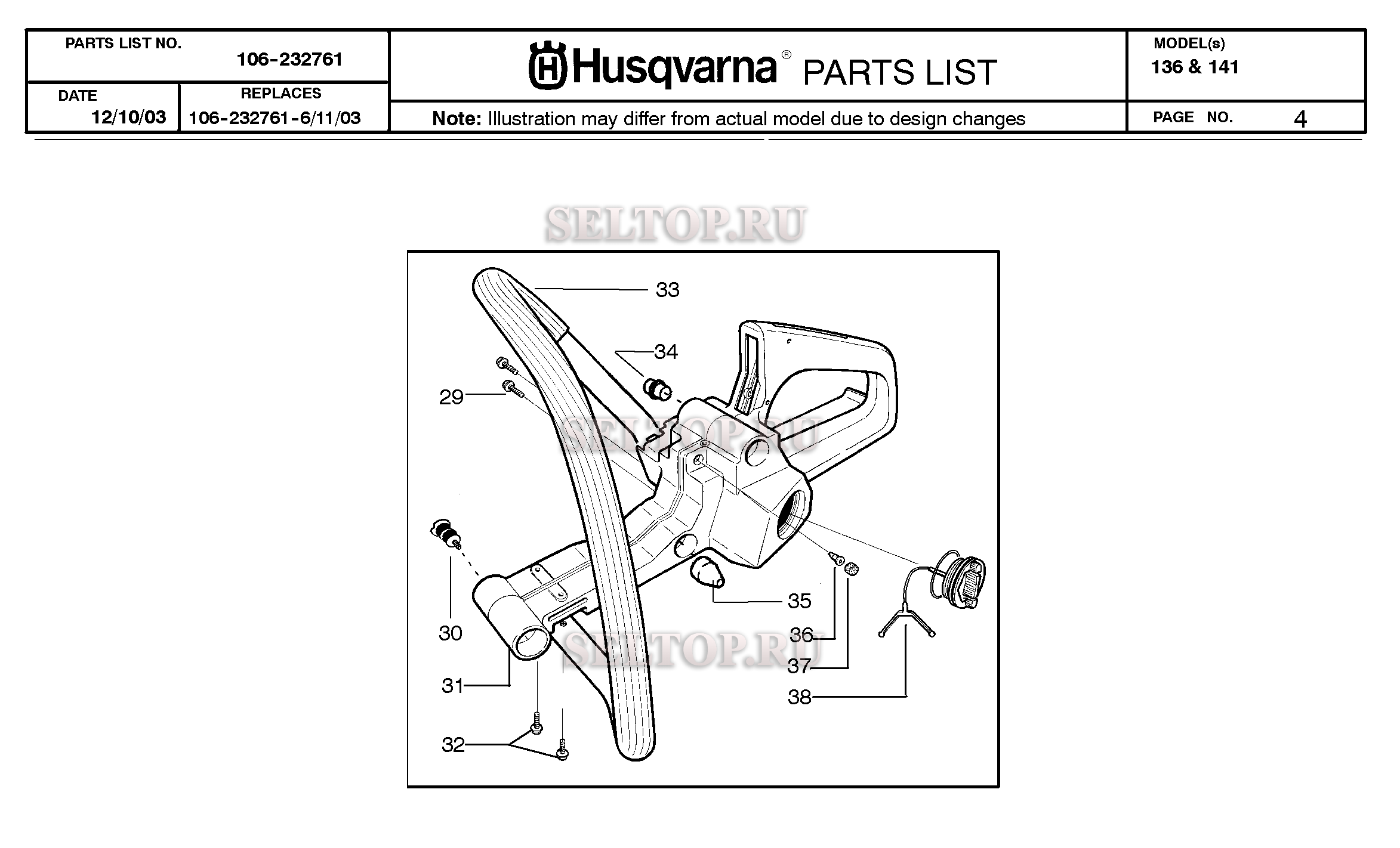 Топливный бак, ручка для бензопилы Husqvarna 136 (с 2004-01), взрыв-схема: