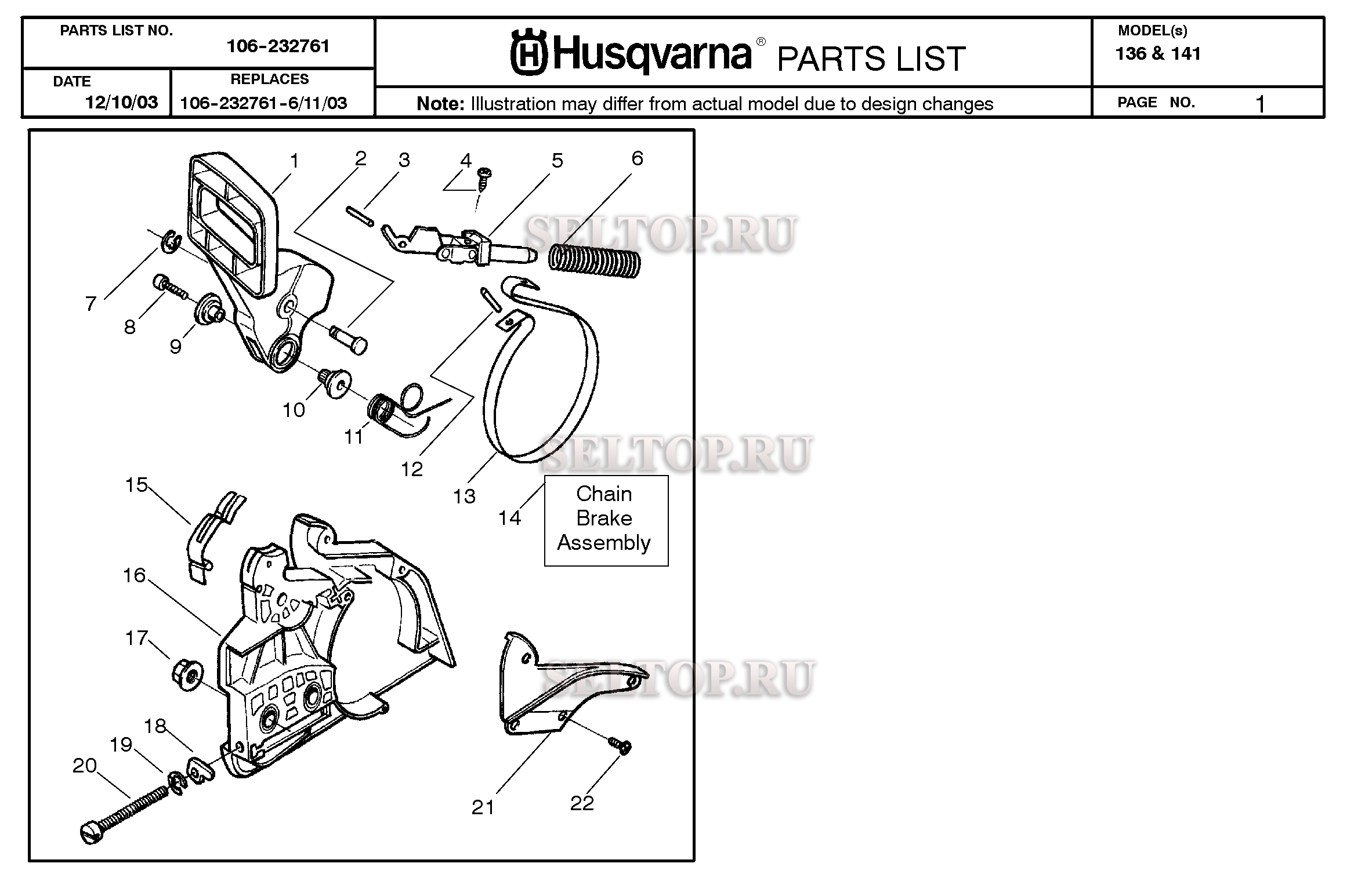 Тормоз цепи для бензопилы Husqvarna 136 (с 2004-01), взрыв-схема: