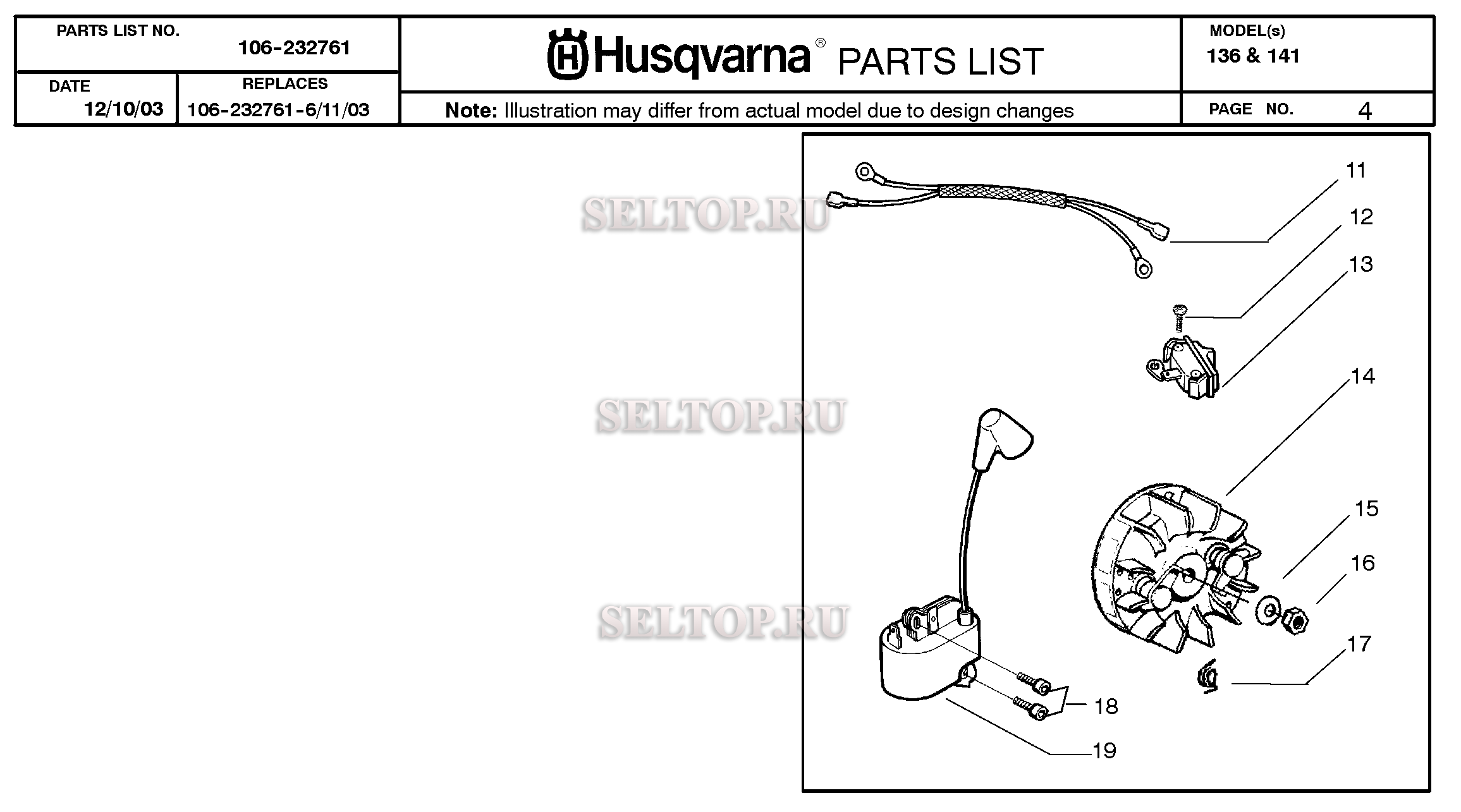 Зажигание для бензопилы Husqvarna 136 (с 2004-01), взрыв-схема: