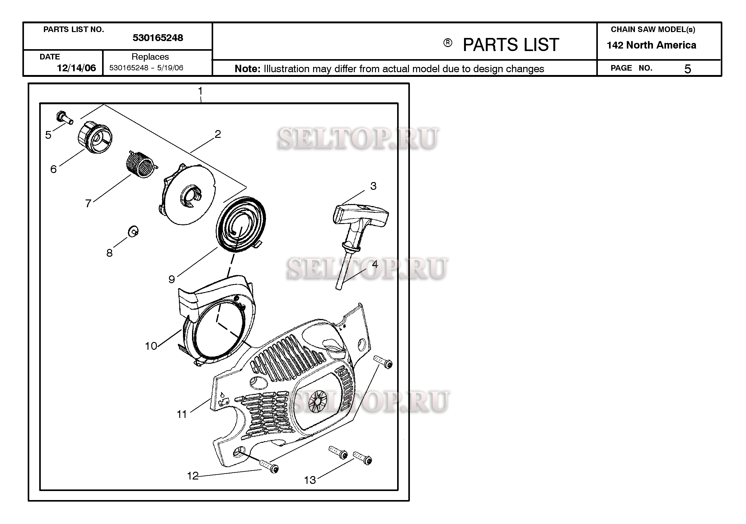 Стартер для бензопилы Husqvarna 142 (с 2006-12), взрыв-схема: