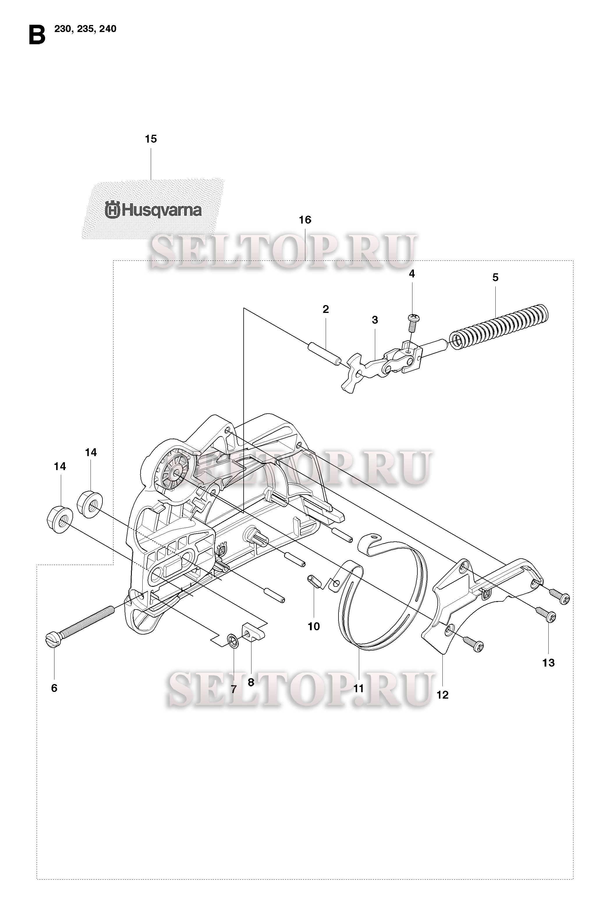 Тормоз цепи для бензопилы Husqvarna 230 (с 2009-04), взрыв-схема: