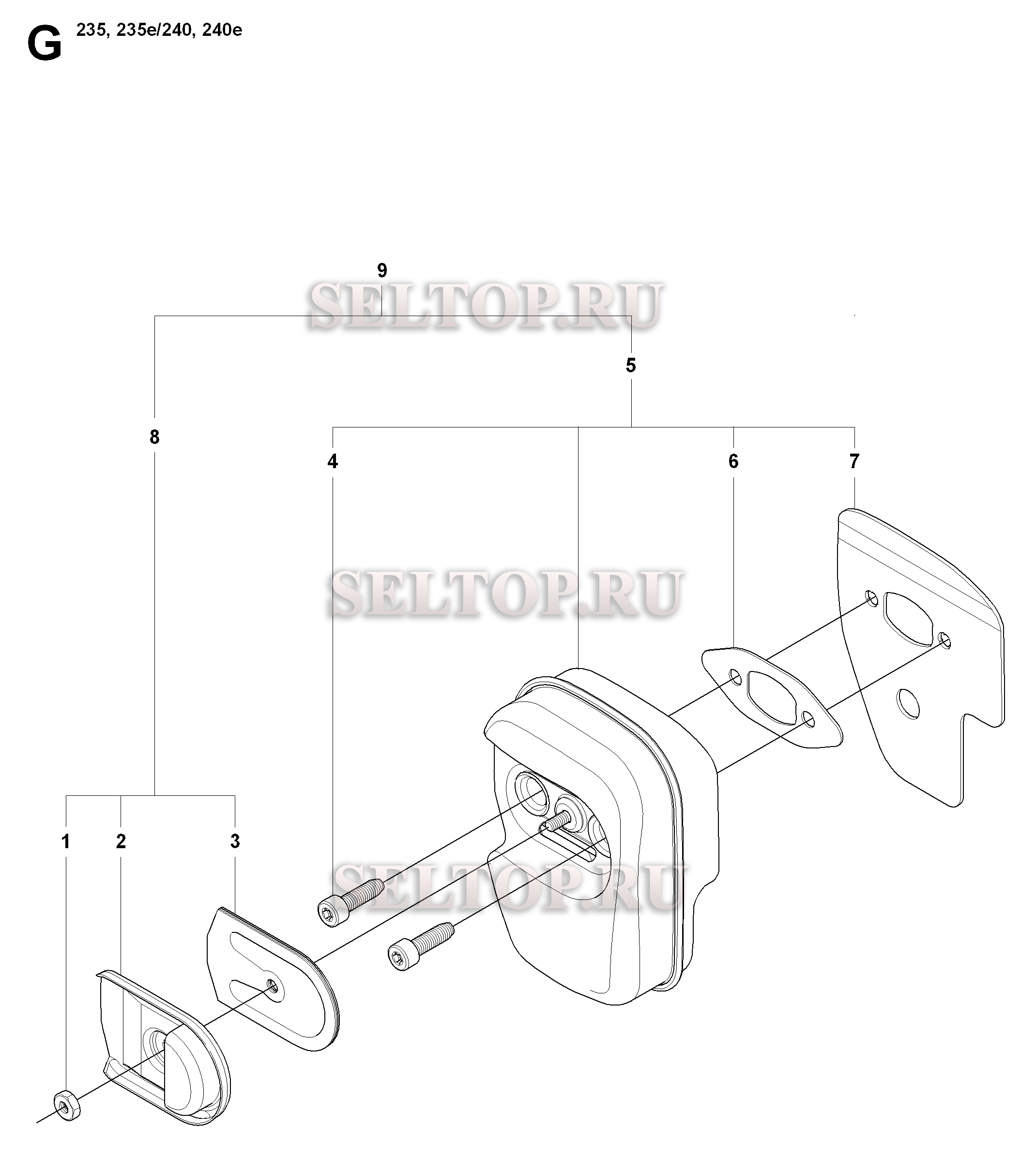 Глушитель для бензопилы Husqvarna 240 (с 2008-01), взрыв-схема: