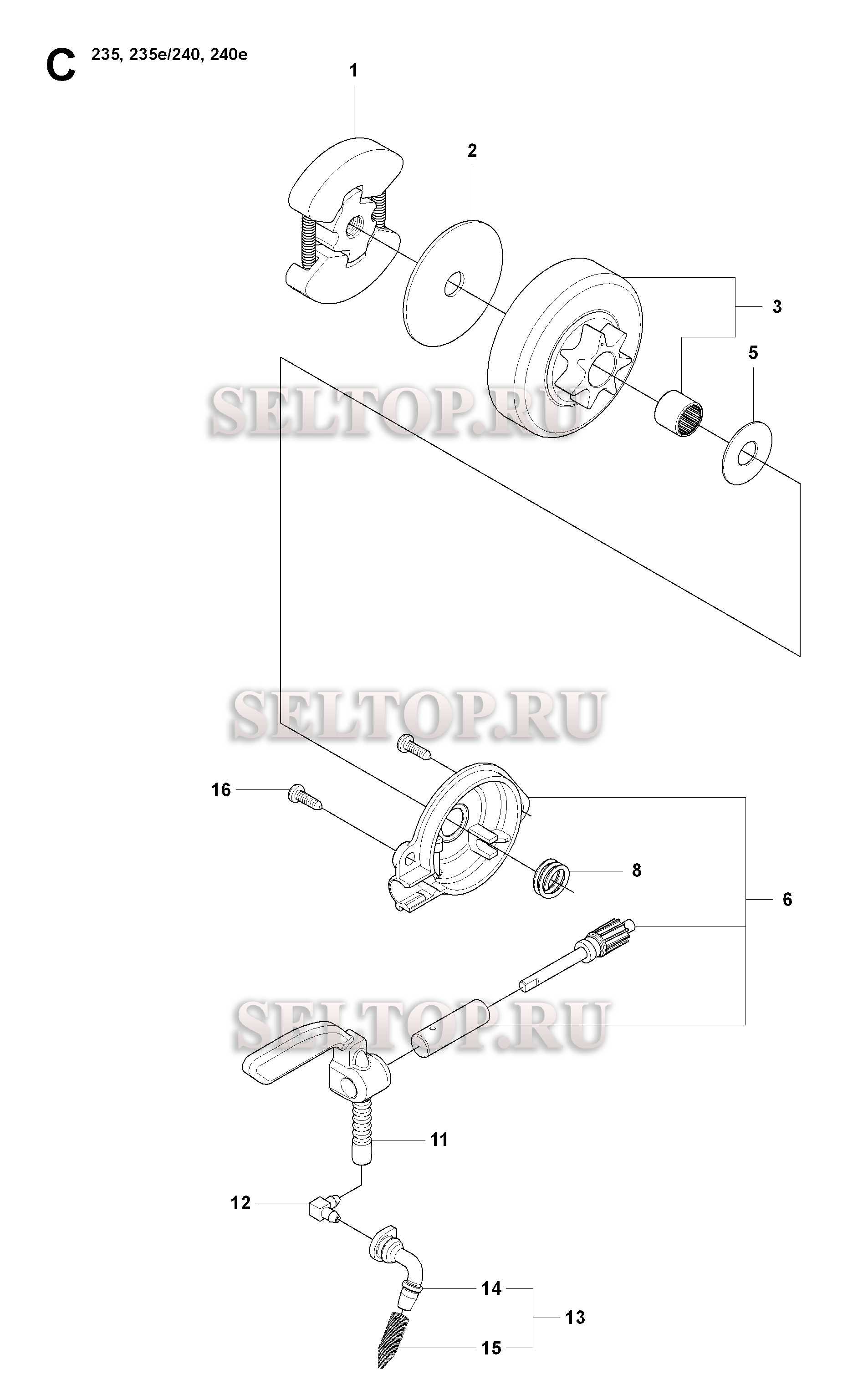Сцепление, масляный насос для бензопилы Husqvarna 240 (с 2008-01), взрыв-схема: