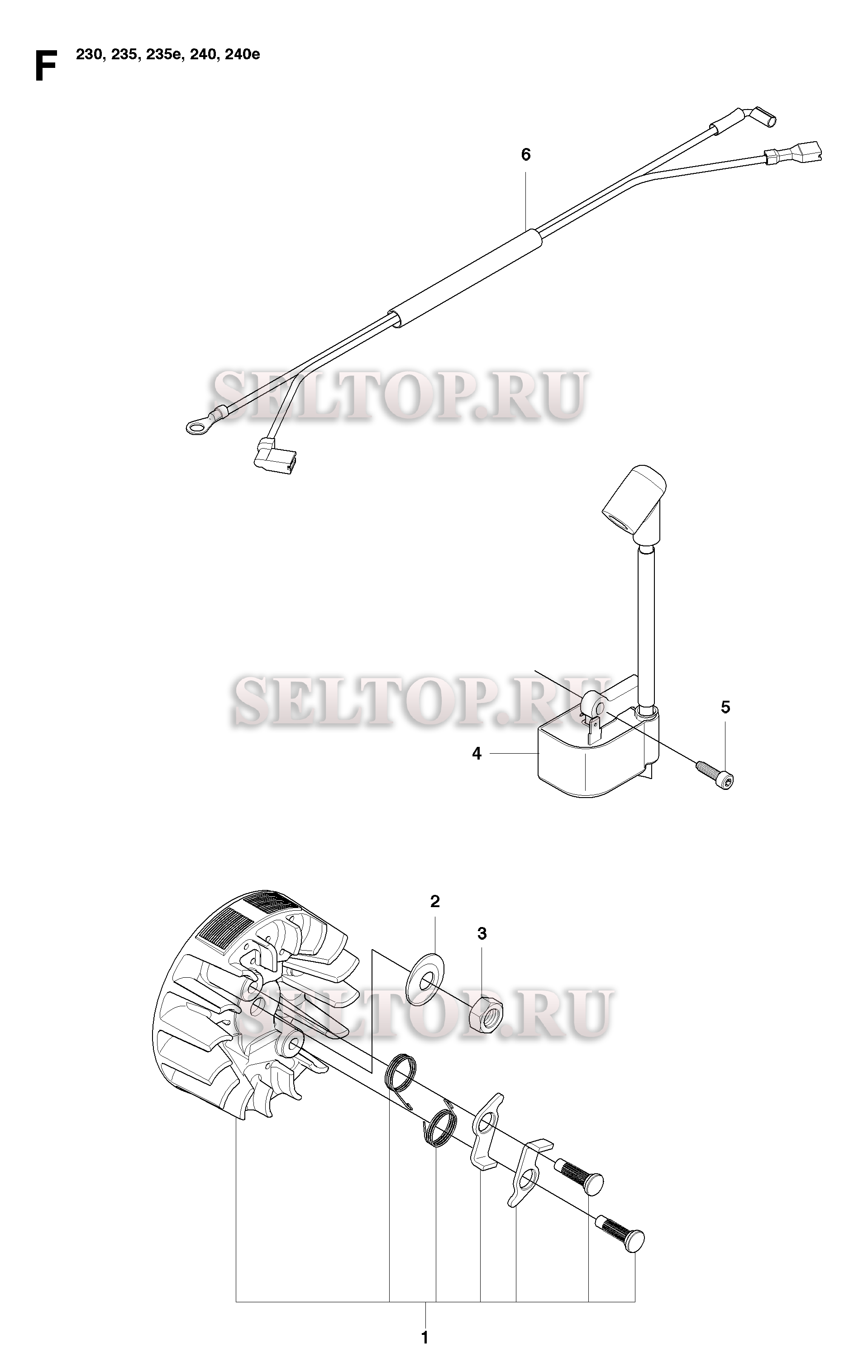 Зажигание для бензопилы Husqvarna 240 (с 2009-04), взрыв-схема: