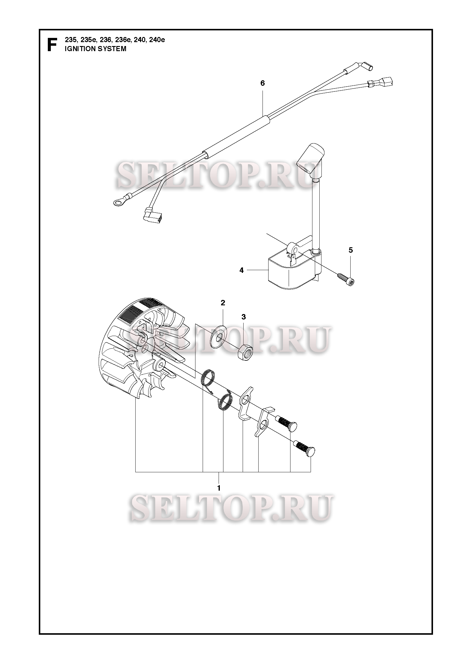 Зажигание для бензопилы Husqvarna 240 (с 2010-04), взрыв-схема:
