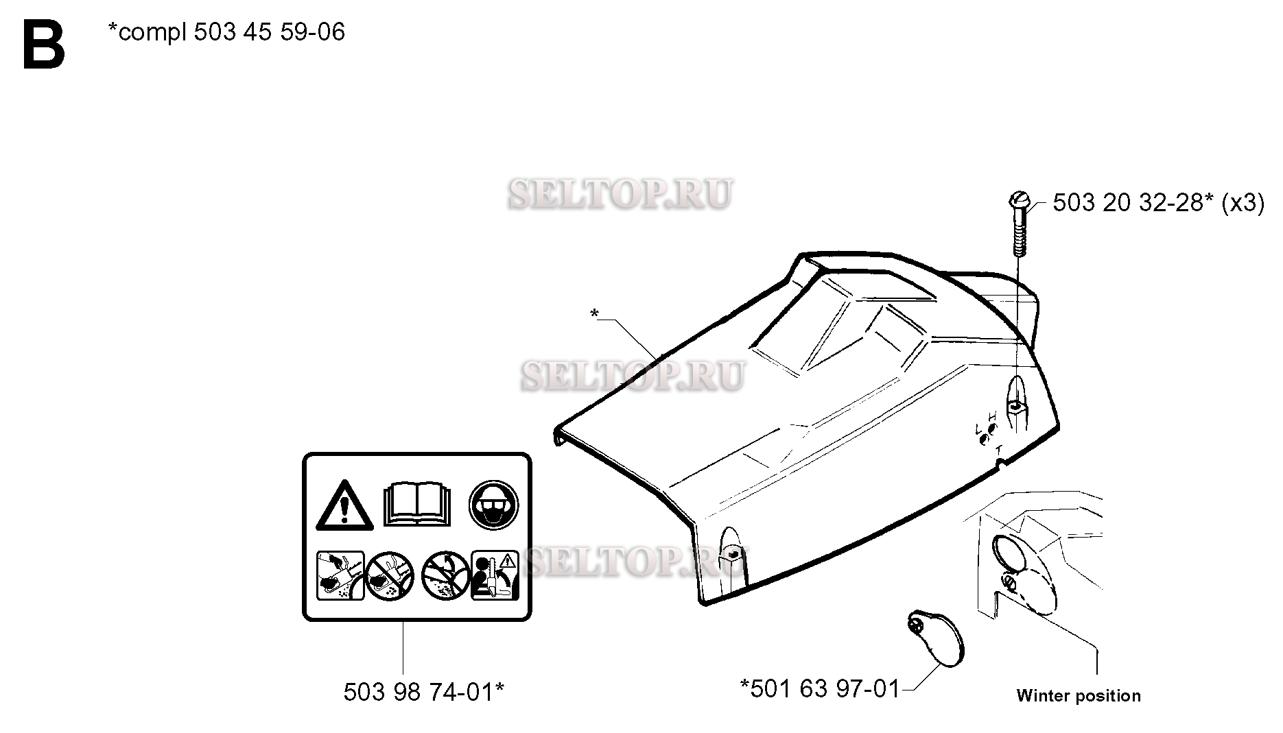 Кожух для бензопилы Husqvarna 242 (с 2001-09), взрыв-схема: