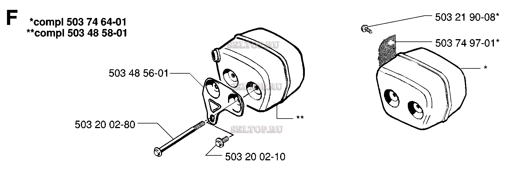 Глушитель для бензопилы Husqvarna 246 (с 1994-12), взрыв-схема: