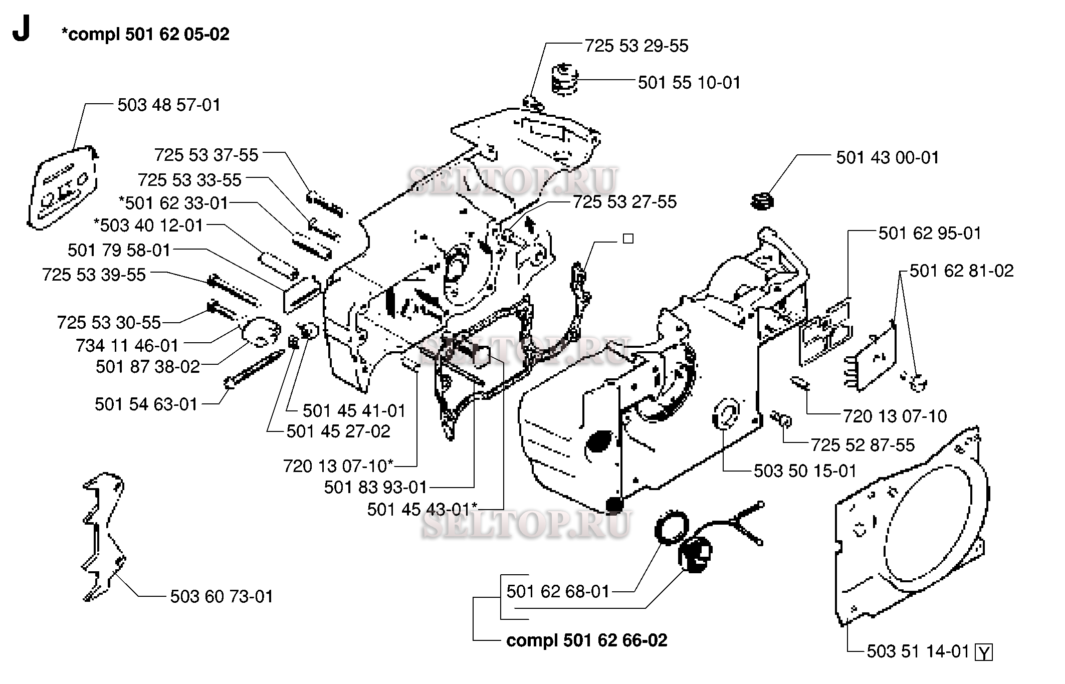 Картер для бензопилы Husqvarna 246 (с 1994-12), взрыв-схема:
