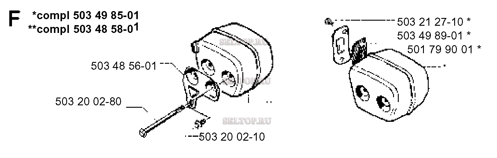 Глушитель для бензопилы Husqvarna 246 (с 1995-02), взрыв-схема: