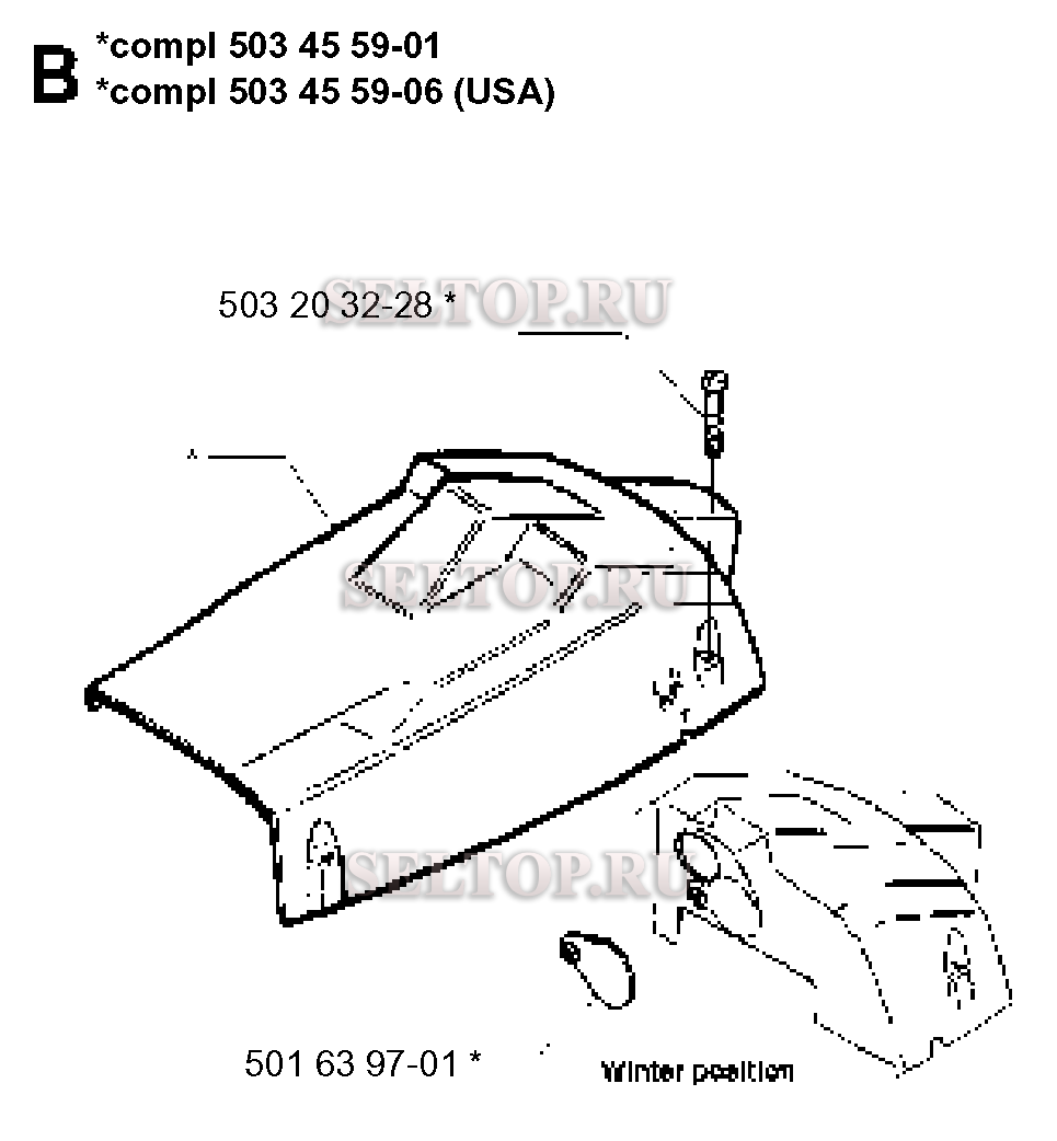 Кожух для бензопилы Husqvarna 246 (с 1995-02), взрыв-схема: