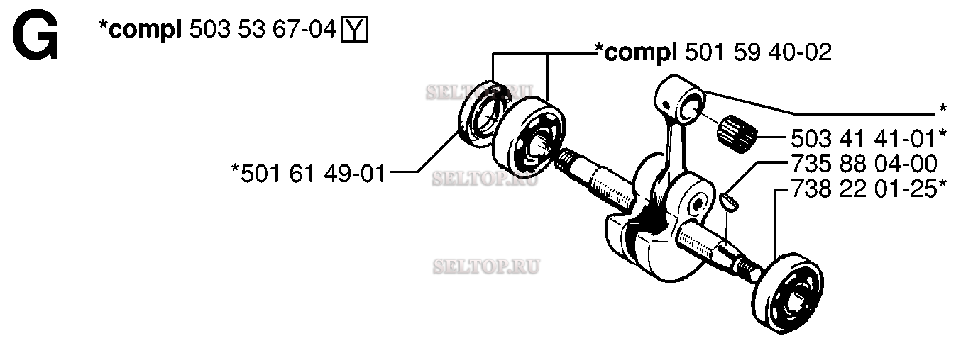 Коленвал для бензопилы Husqvarna 246 (с 1998-06), взрыв-схема: