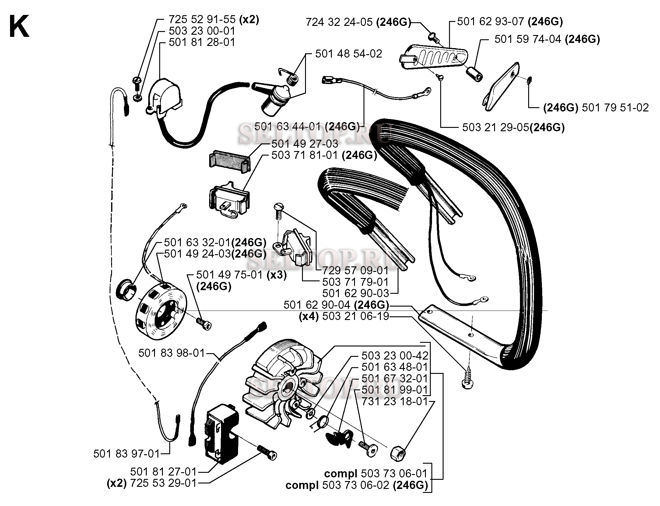 Электротехника для бензопилы Husqvarna 246 (с 2001-10)