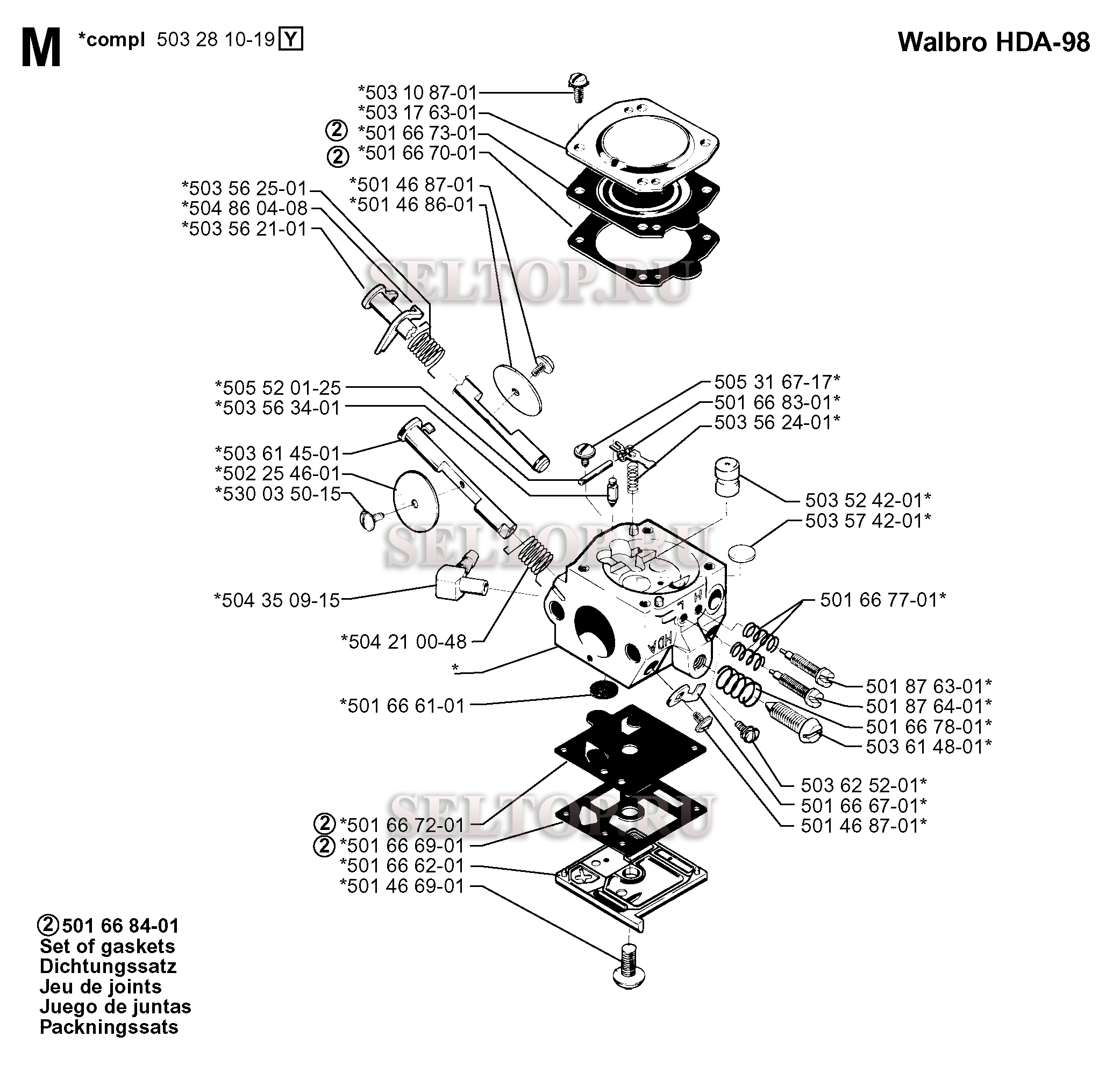 Запчасти карбюратора для бензопилы Husqvarna 246 (с 2001-10), взрыв-схема: