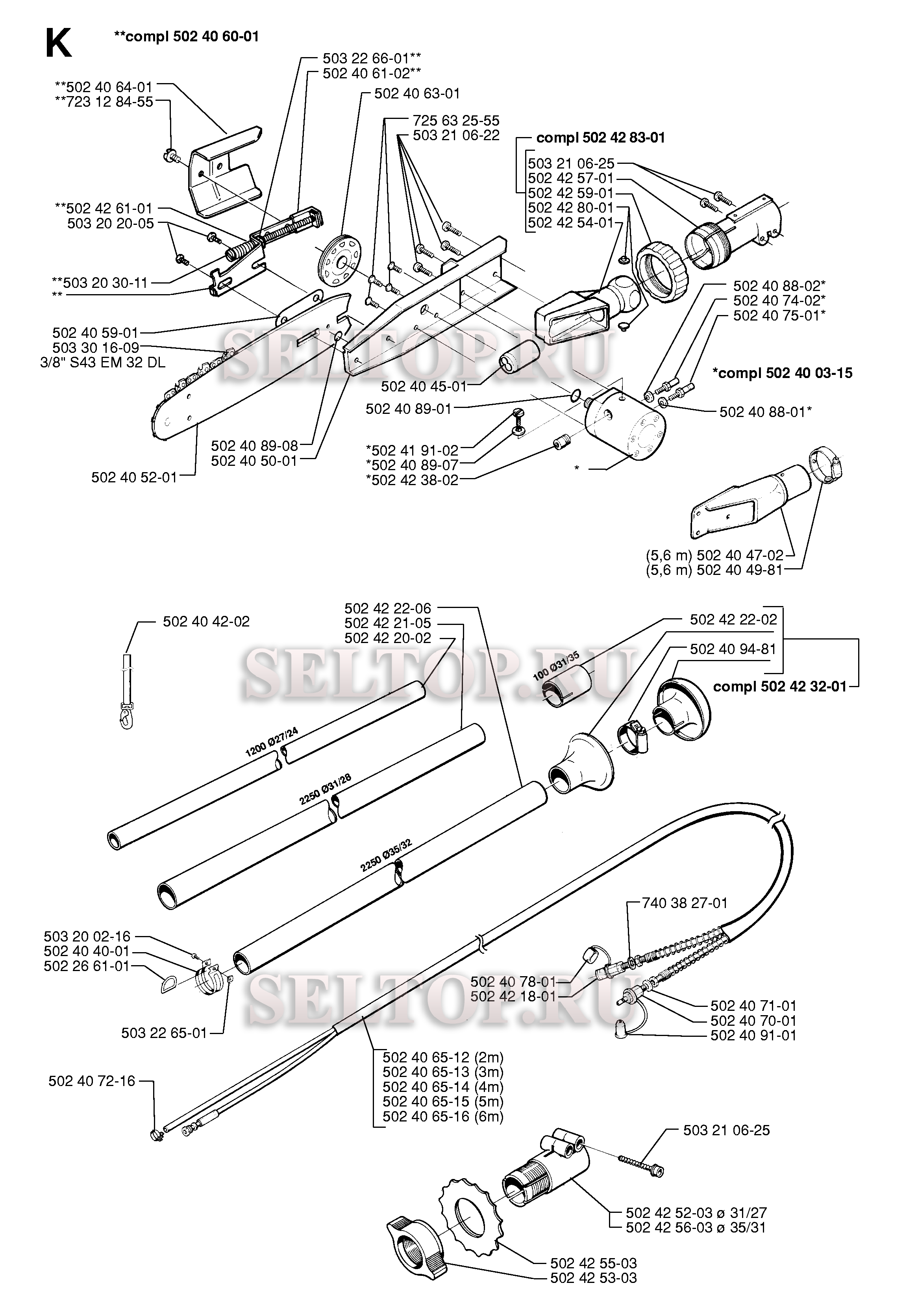 Режущая часть для бензопилы Husqvarna 250 PS (с 1996-02), взрыв-схема: