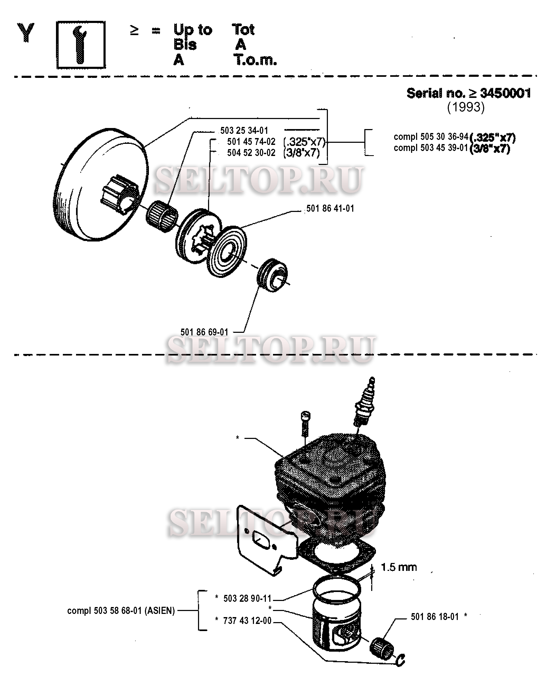 Комплект улучшения для бензопилы Husqvarna 254 (с 1994-06), взрыв-схема: