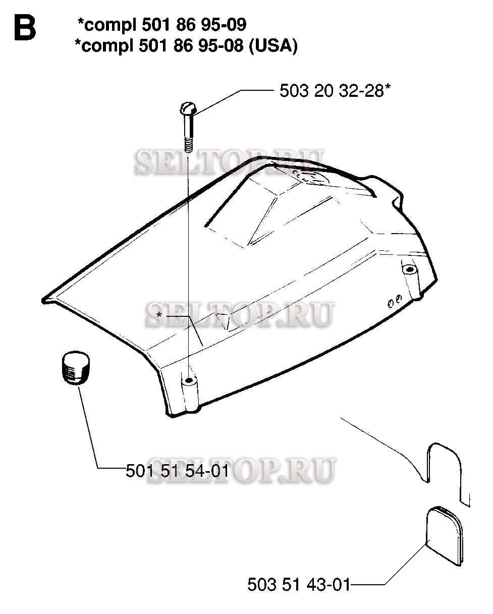 Кожух для бензопилы Husqvarna 254 (с 1996-01), взрыв-схема: