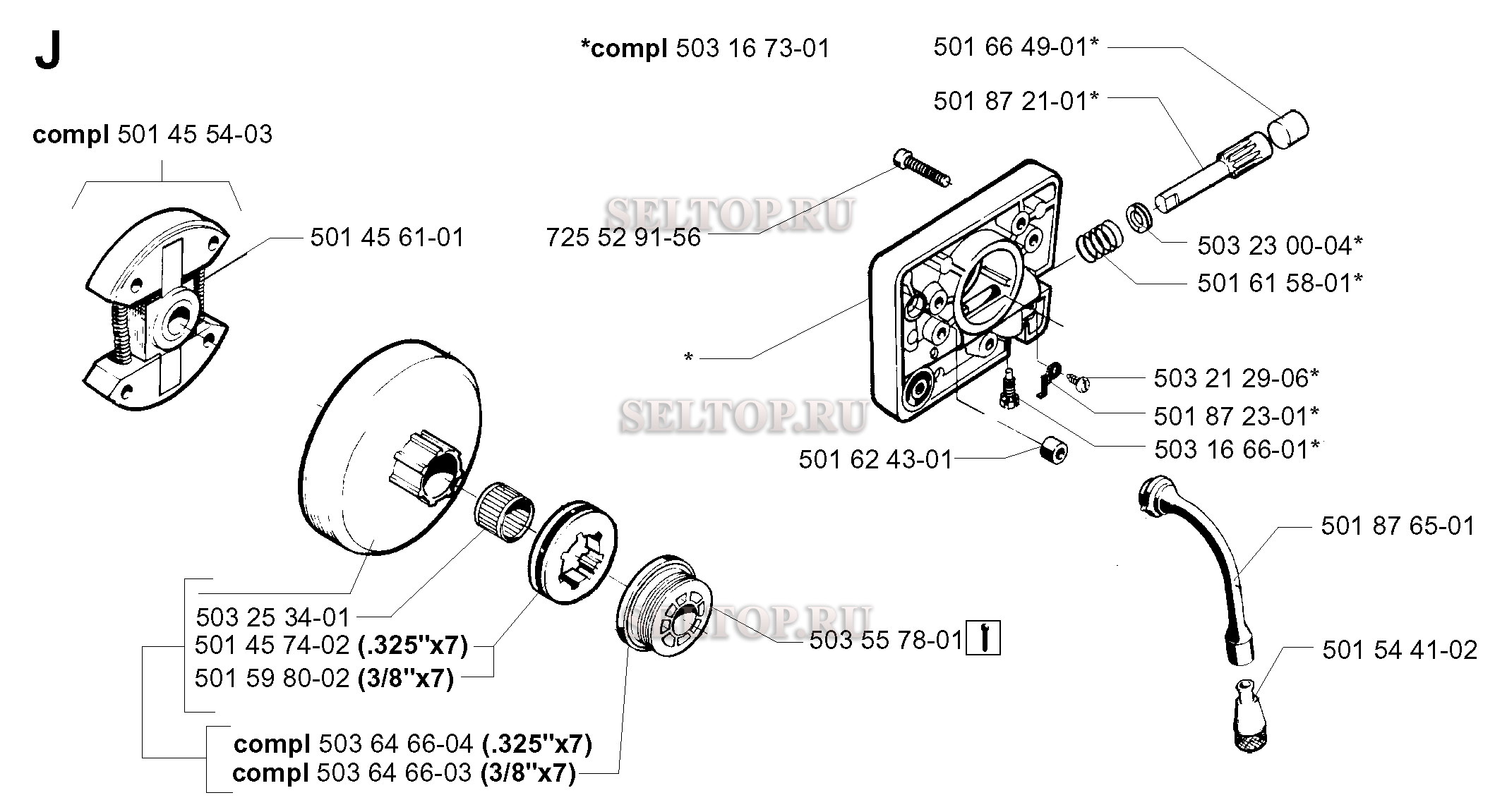 Сцепление, масляный насос для бензопилы Husqvarna 254 (с 1999-06), взрыв-схема: