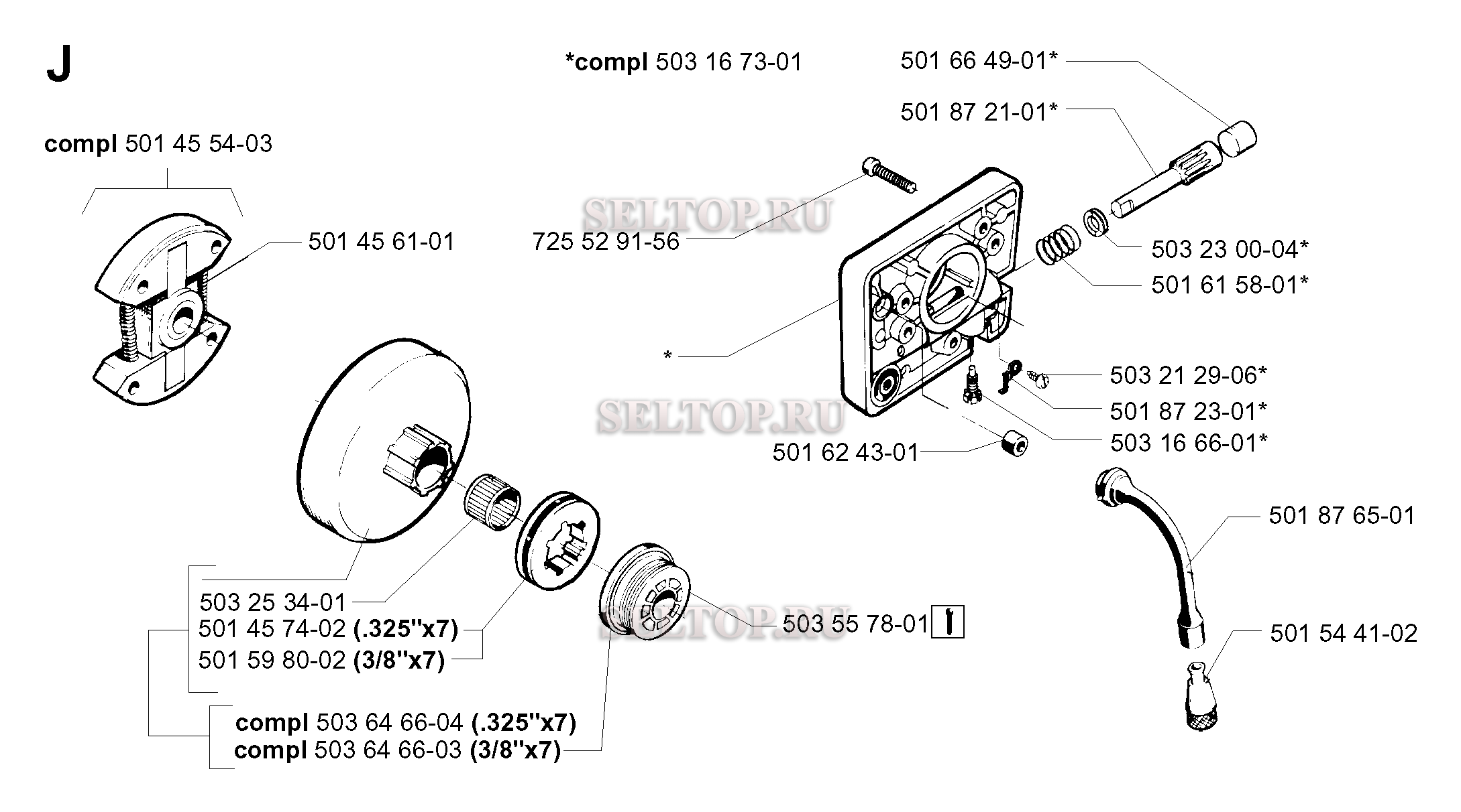 Сцепление, масляный насос для бензопилы Husqvarna 254 (с 2001-09), взрыв-схема: