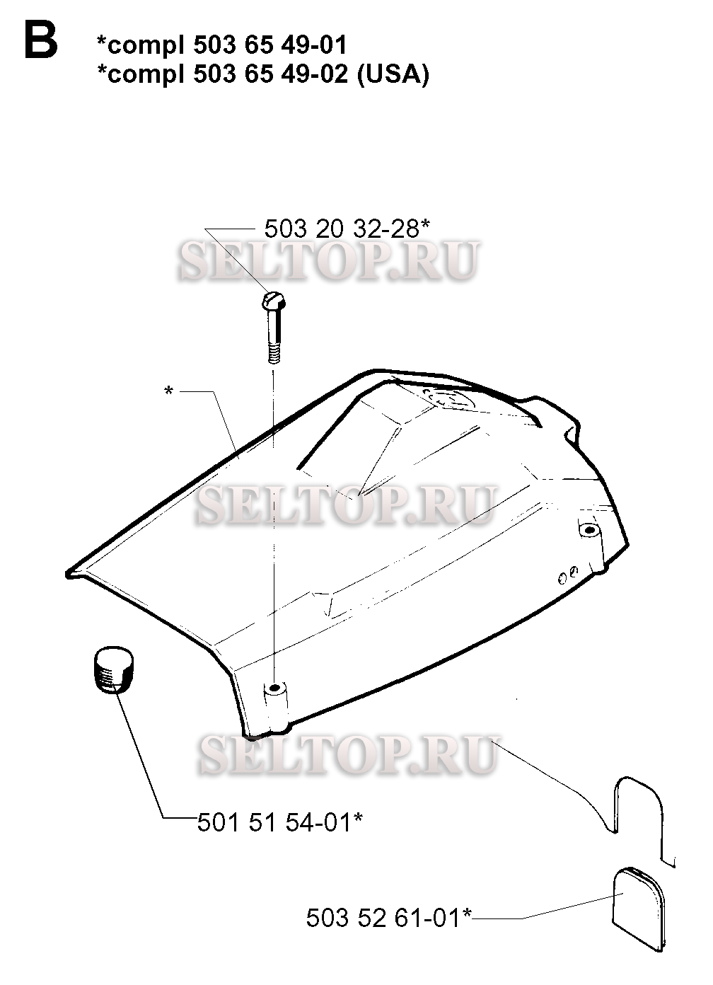 Кожух для бензопилы Husqvarna 257 (с 1998-03), взрыв-схема: