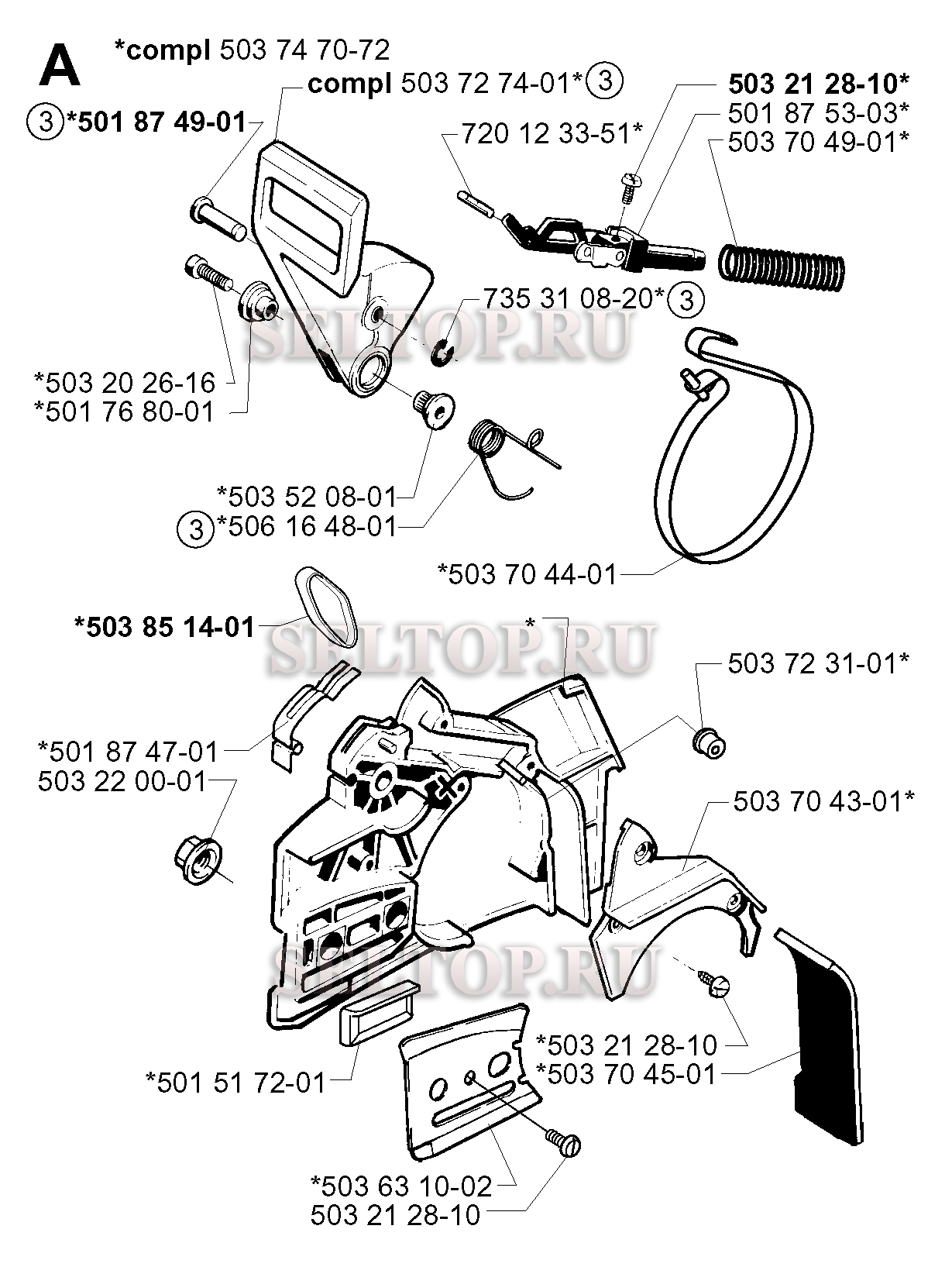 Тормоз цепи для бензопилы Husqvarna 262 XP (с 1999-06), взрыв-схема: