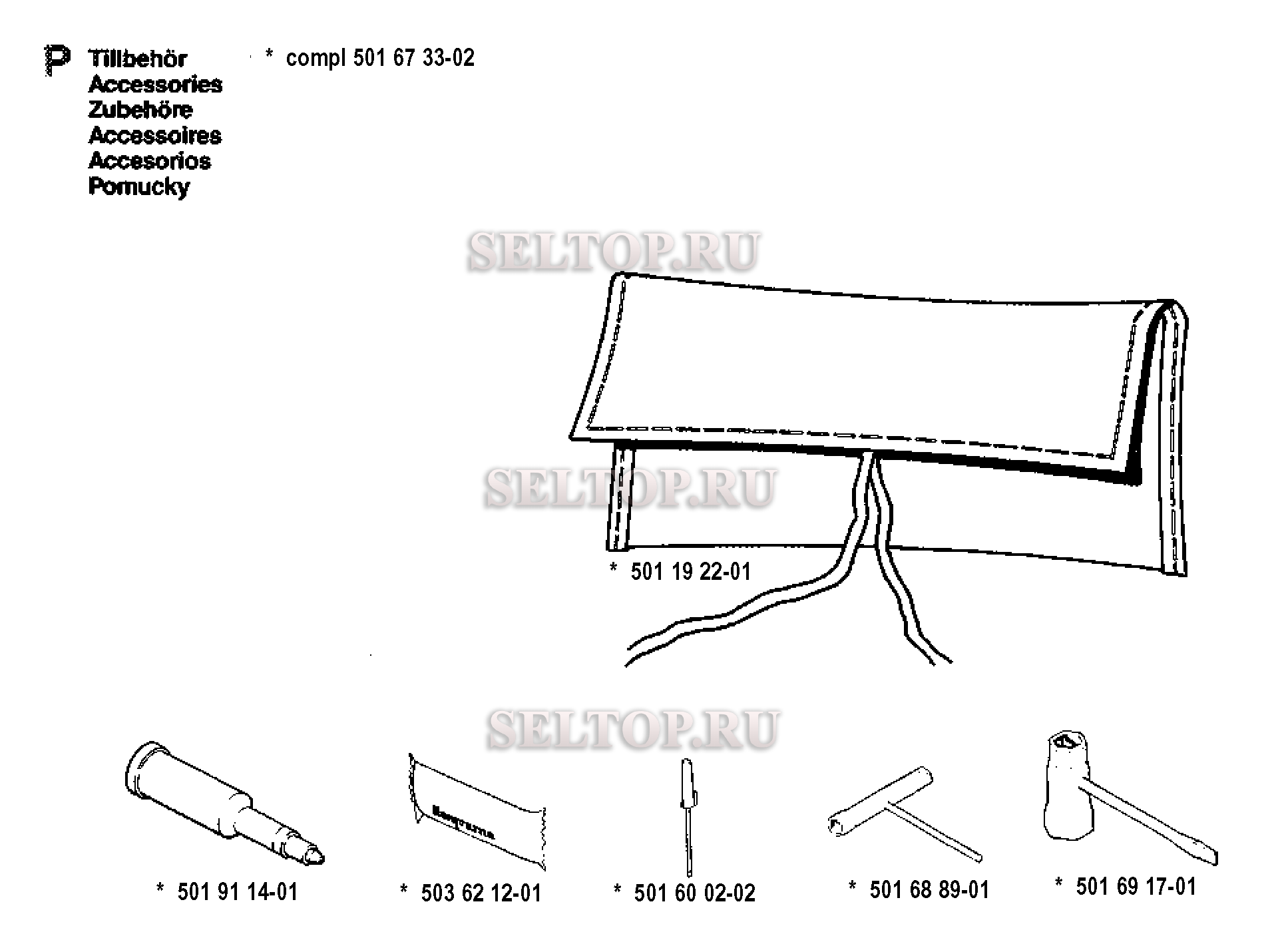 Аксессуары для бензопилы Husqvarna 268 SPECIAL (с 1991-02), взрыв-схема: