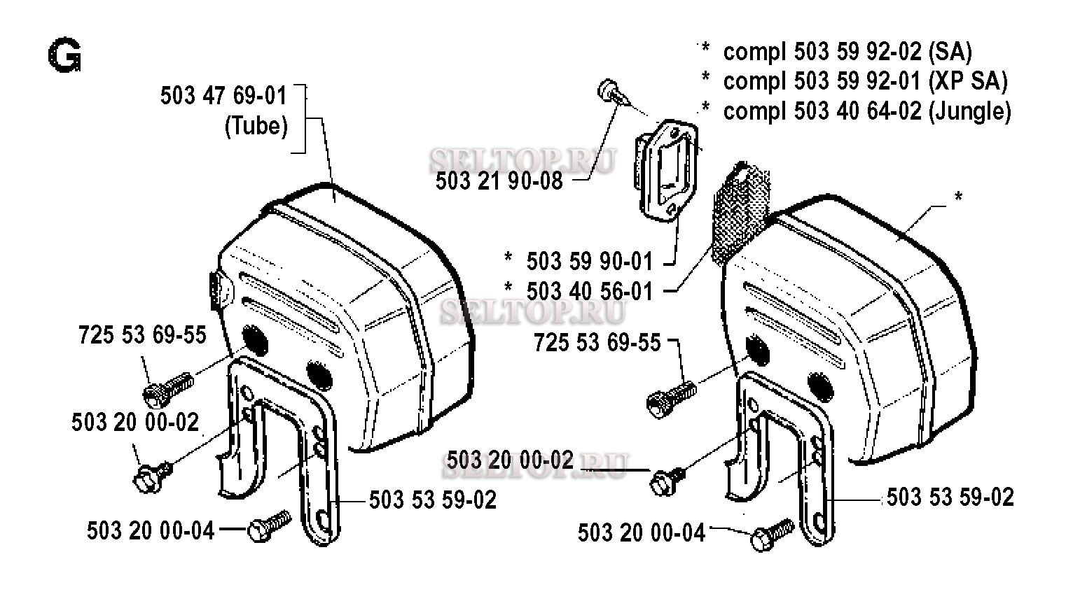 Глушитель для бензопилы Husqvarna 268 SPECIAL (с 1991-02), взрыв-схема:
