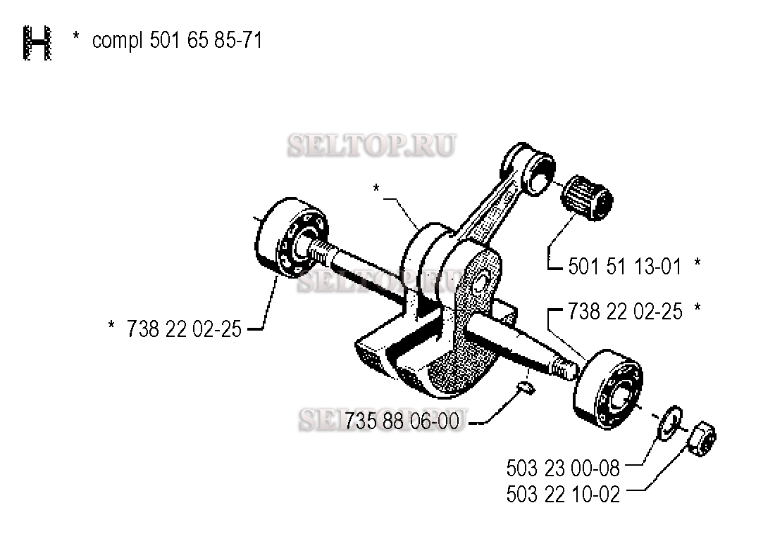 Коленвал для бензопилы Husqvarna 268 (с 1990-05), взрыв-схема: