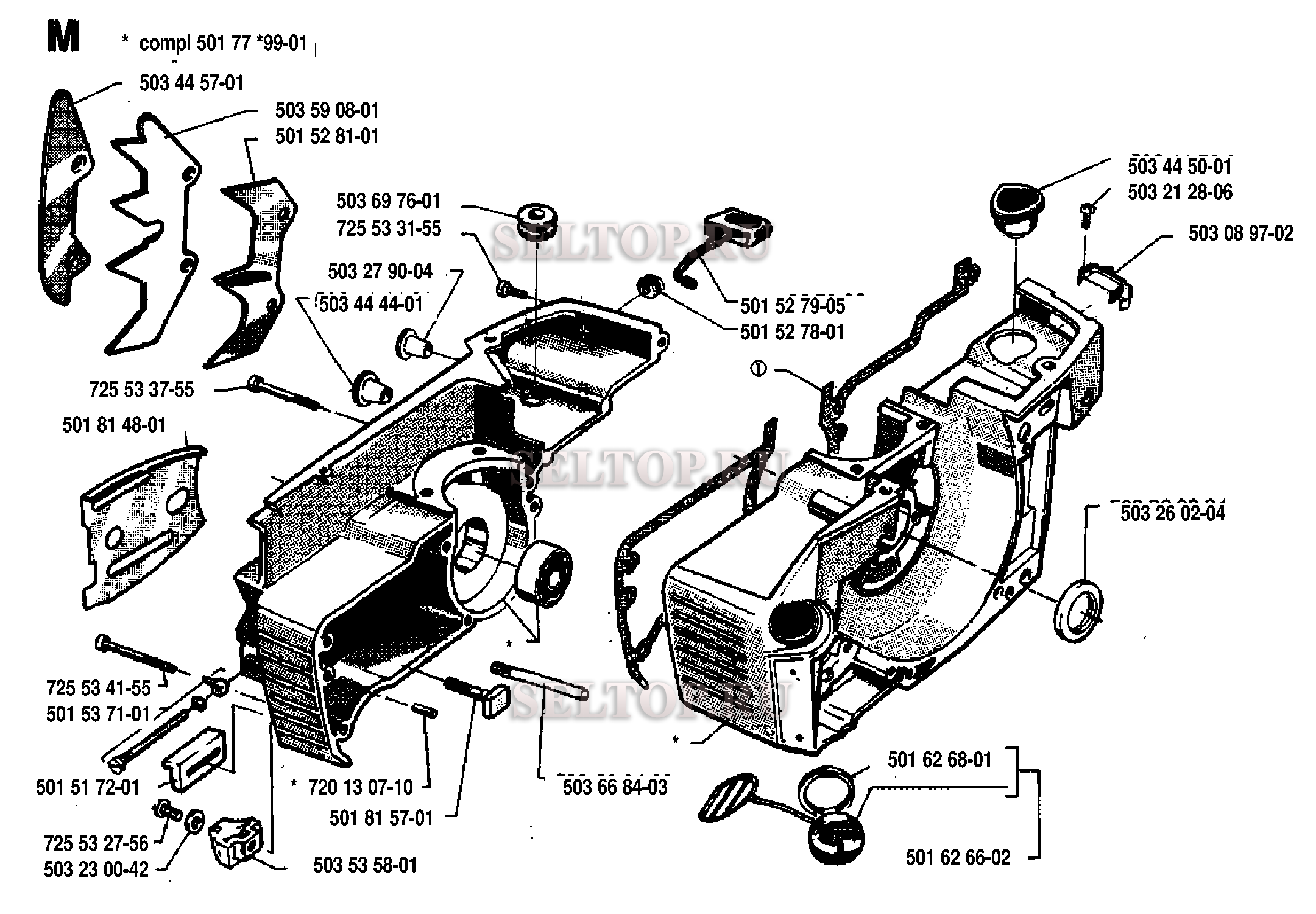 Картер для бензопилы Husqvarna 268 (с 1993-09), взрыв-схема:
