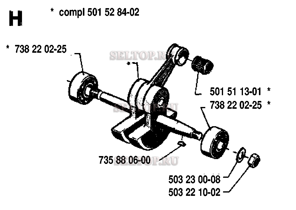 Коленвал для бензопилы Husqvarna 268 (с 1993-09), взрыв-схема: