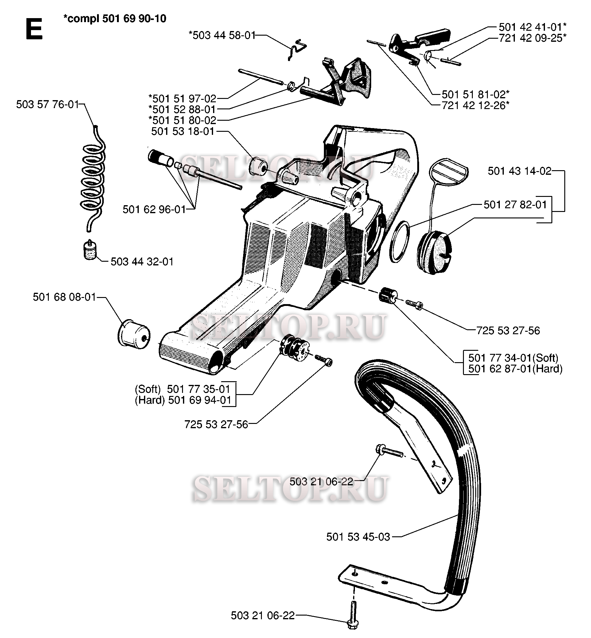 Топливный бак, ручка для бензопилы Husqvarna 268 (с 1997-01), взрыв-схема: