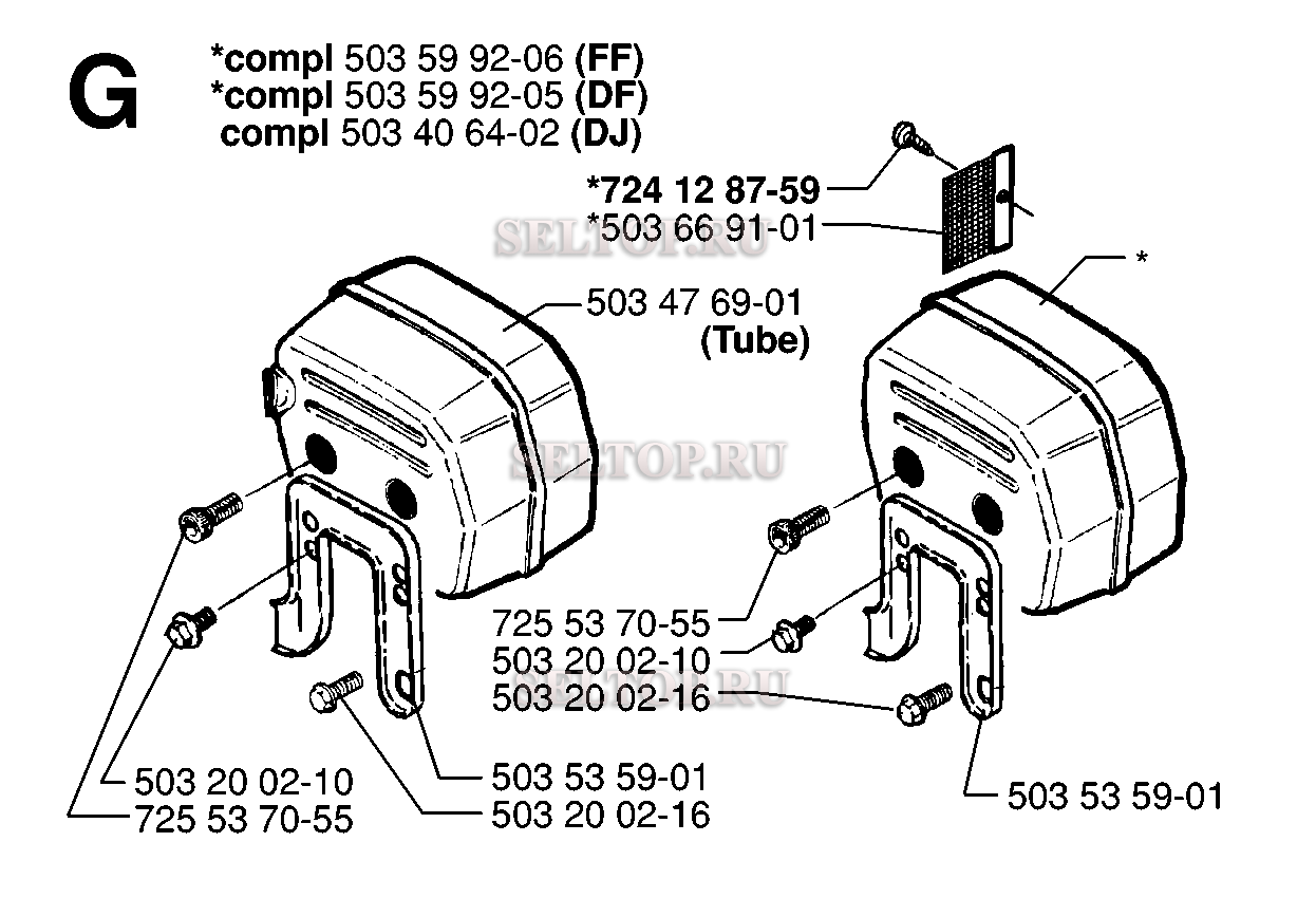 Глушитель для бензопилы Husqvarna 268 (с 1999-11), взрыв-схема: