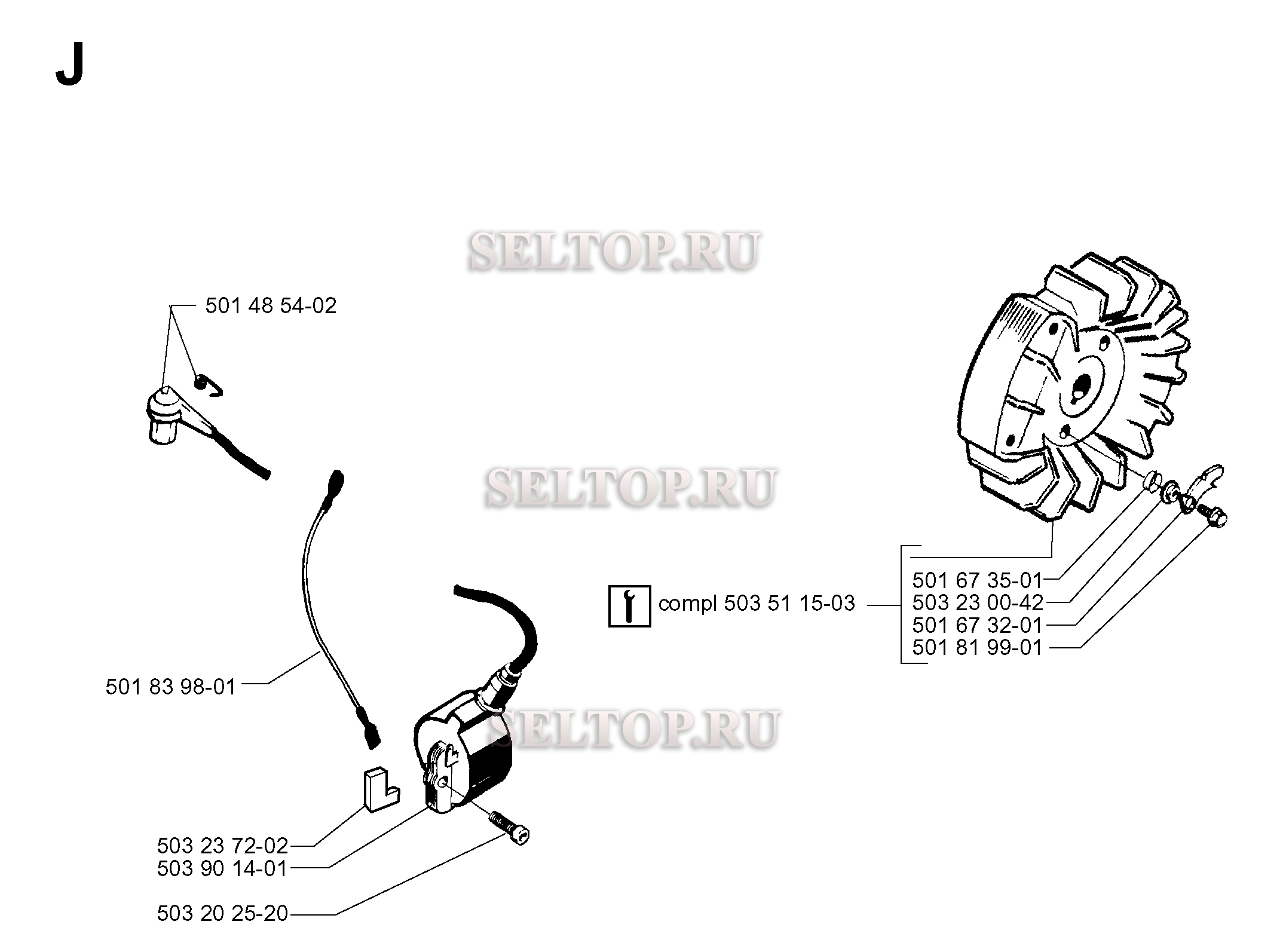 Зажигание для бензопилы Husqvarna 268 (с 2001-10), взрыв-схема: